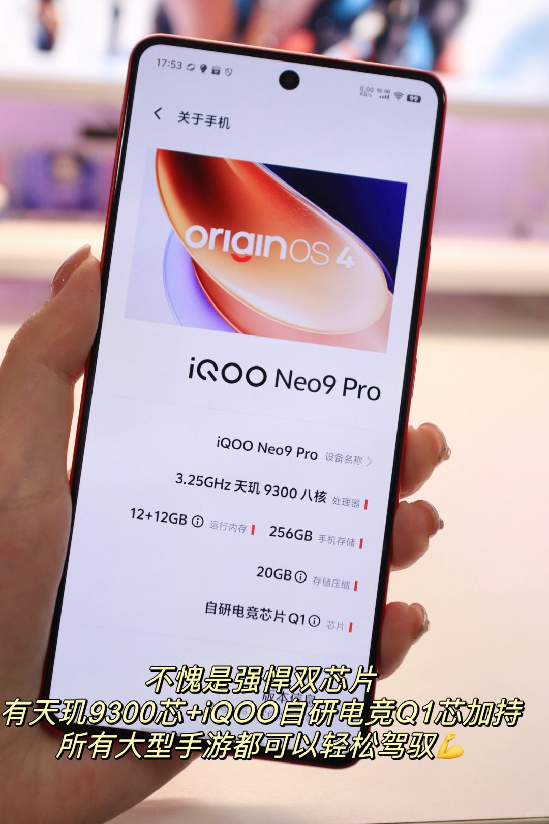 iQOO Neo 9 Pro可是携带天玑9300芯➕iQOO自研电竞Q1芯的双芯战神,最高1.5K超分超帧能力,高帧稳定半小时,游戏画面细腻流畅,这个配置直接上探旗舰性能,❤️给到了游戏玩家绝对的硬核和诚意。