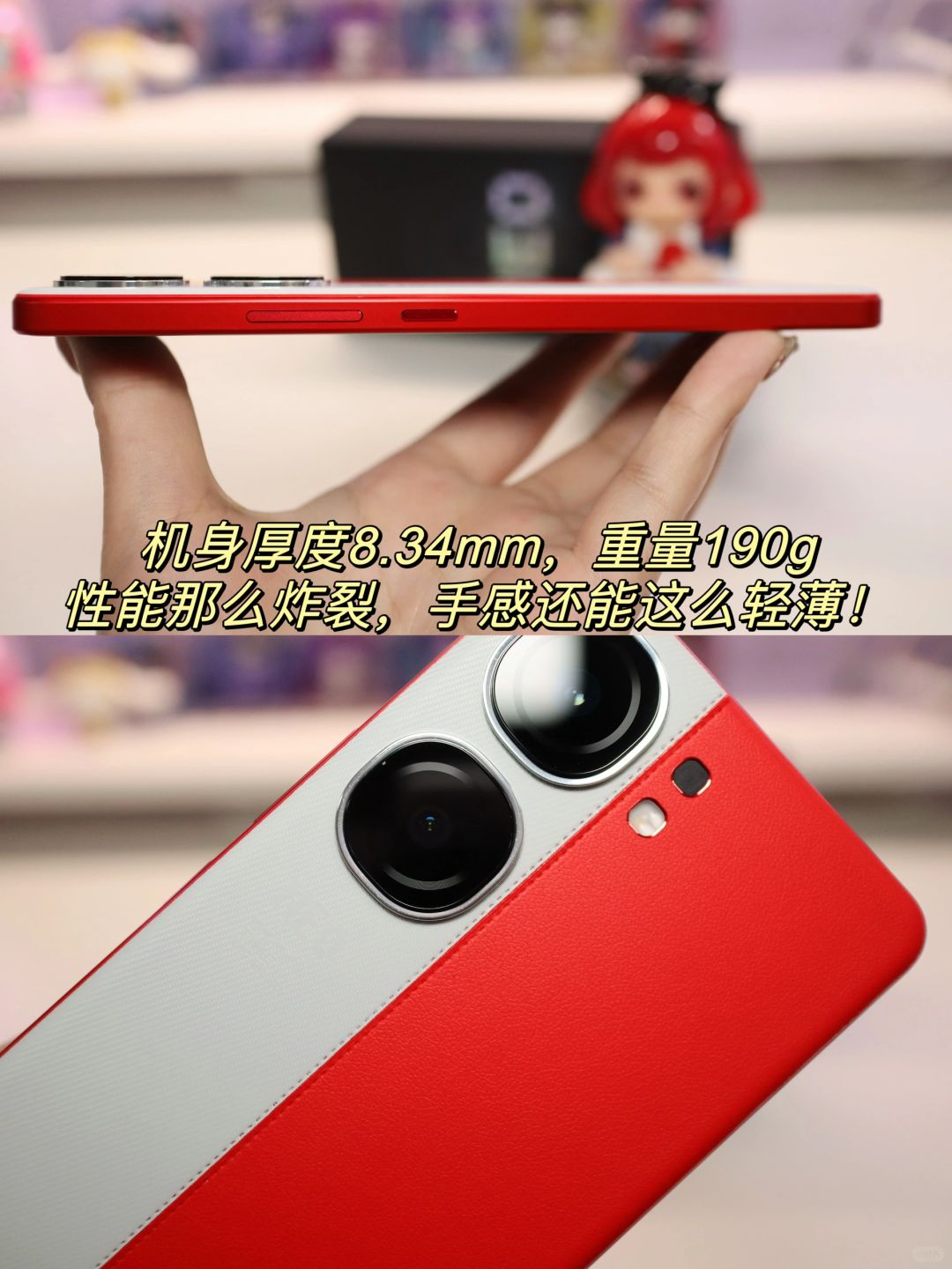我这款iQOO Neo 9 Pro是限定红白魂配色,拿到手机第一感受就是手感没得说,白色部分的碳纤维素皮和红色部分的肤感荔枝纹素皮,注定机身不易滑手!