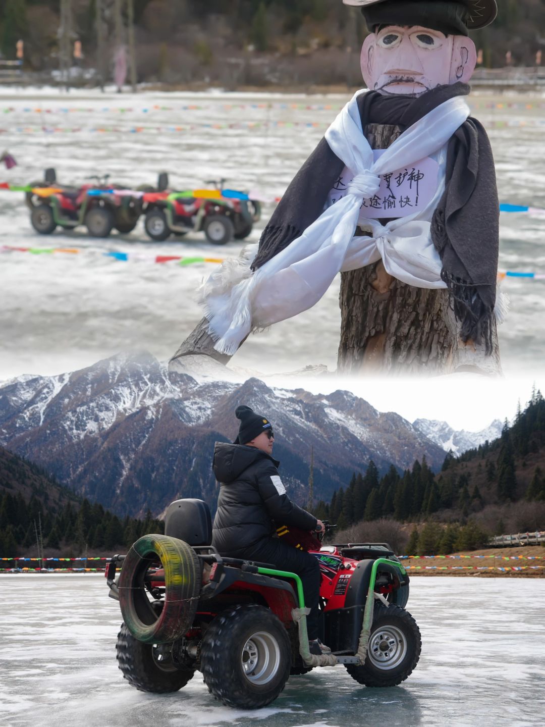 🌟全地形车:你也许在泥地或者山路上开过全地形车,但是在冰面上也开过了吗?冬日的达古湖凝结成冰,正是玩耍这项娱乐活动的好去处