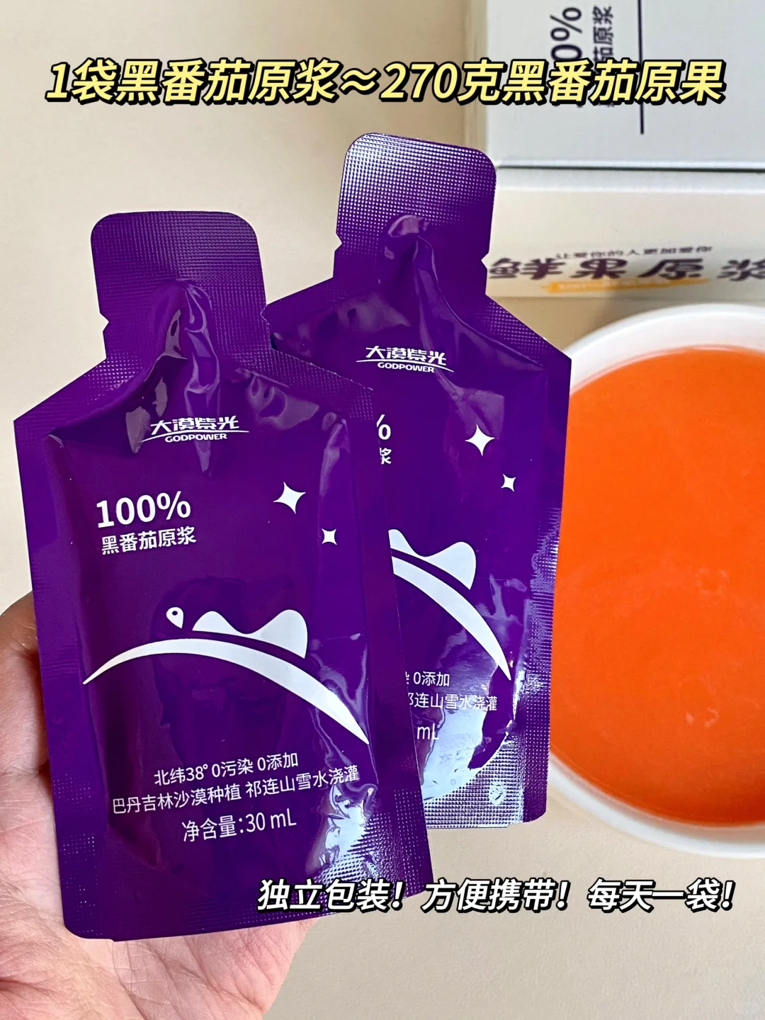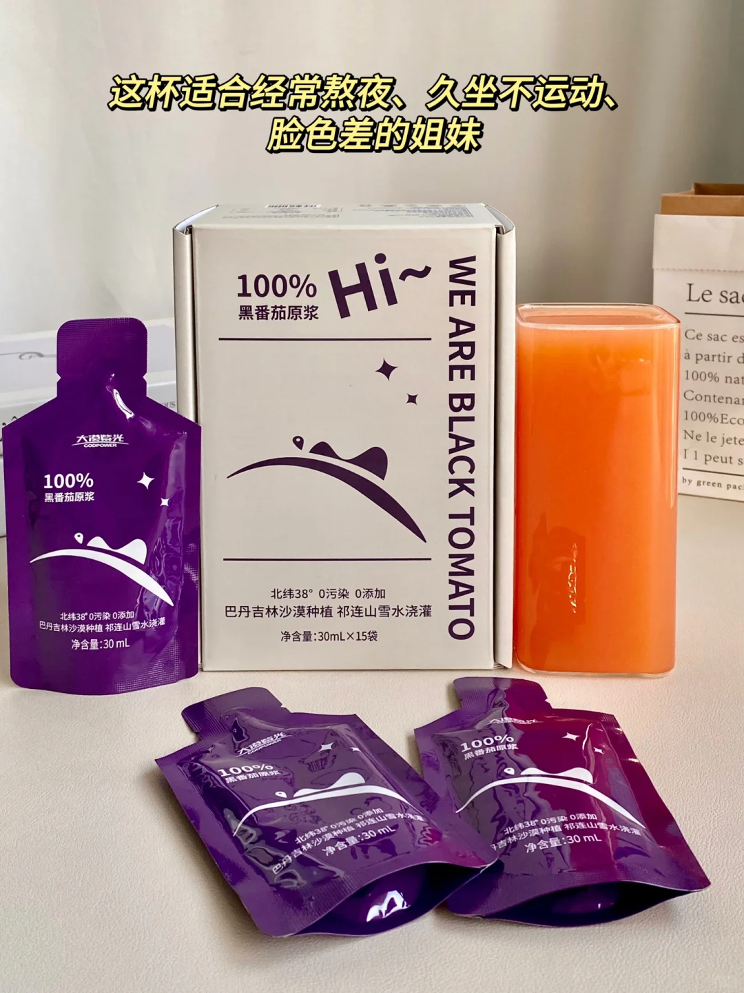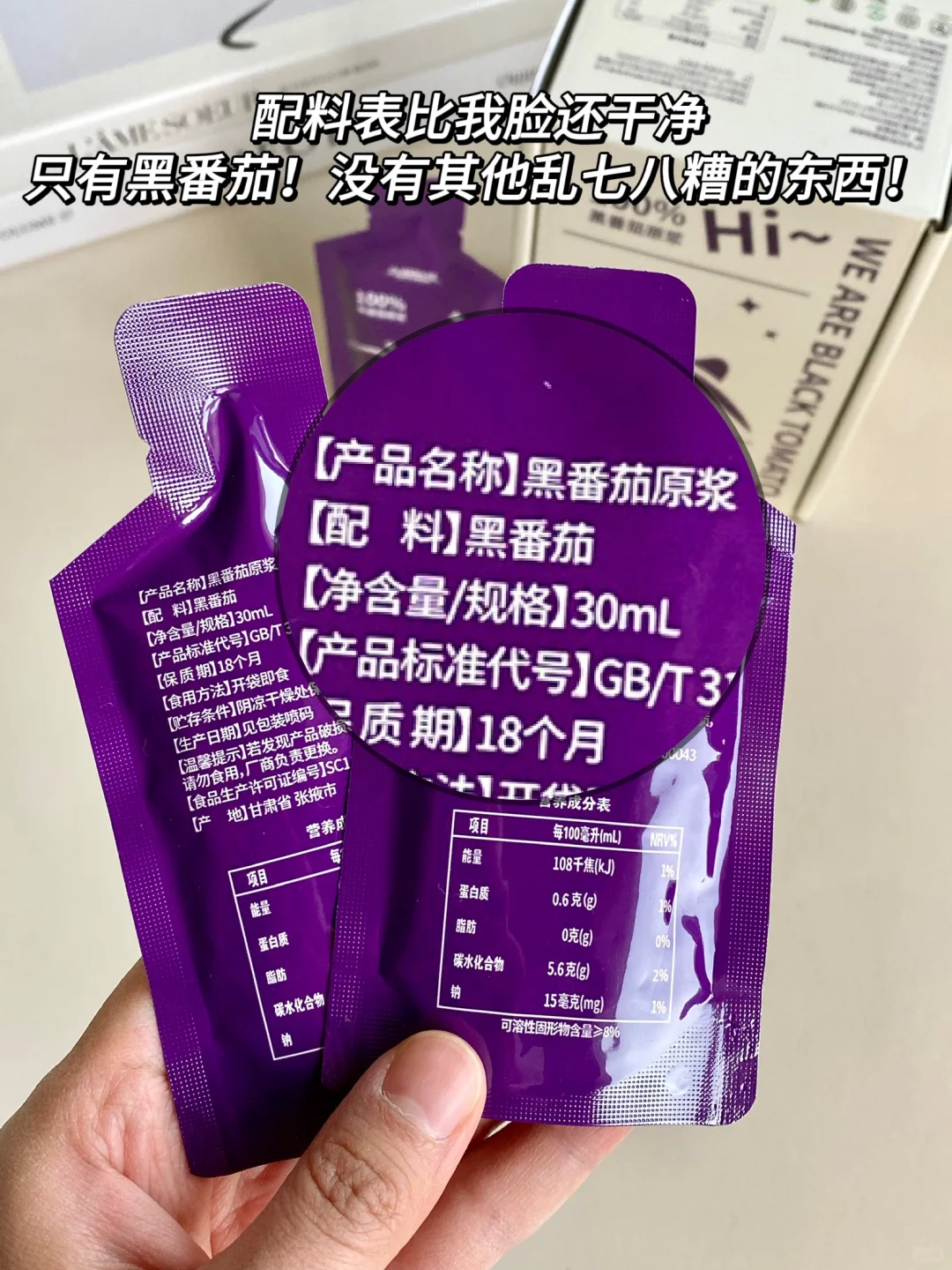 里面的黑番茄是100%鲜果原浆!不添加1滴水!也没有添加任何防腐剂那些乱七八糟的东西!