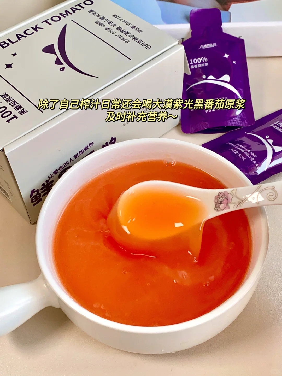 做法简单!营养丰富!平时不爱运动又爱熬夜的姐妹,容易脸色不好…多喝点果蔬汁状态真的会好很多!没时间榨汁的姐妹可以试试100%黑番茄原浆!袋装很方便,酸酸甜甜的很容易坚持!我一般一天2袋,熬夜都不再怕的!!