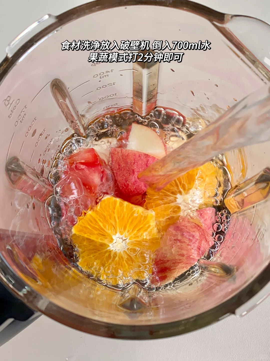 ✅做法:食材清洗干净放入破壁机,倒入500ml清水,果蔬模式打2分钟就可以!