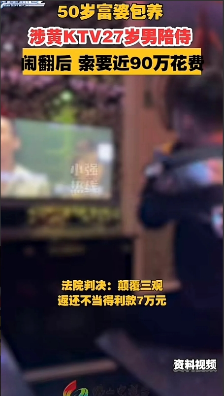 “太狗血!”湖南长沙,一50岁富婆到KTV唱歌,见一27岁男公关帅气威猛,便与他发生了关系。事后富婆看上小伙,还将他包养,半年花了89万。岂料,当富婆得知小伙已婚后,顿时大怒,当即要求他还钱,法院这样判了。 (来源:佛山电视台小强热线)