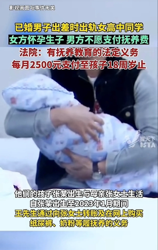 陕西,一已婚男子出差,约10年未见的高中女同学吃饭,两人喝了点小酒,情到深处竟发生了关系。岂料,事后女子发现自己怀孕,还偷偷将孩子生了下来,男子得知后,不得不每月向女子转抚养费,可几年后,男子却以被女子欺骗拒绝再转账! (来源:九派新闻)