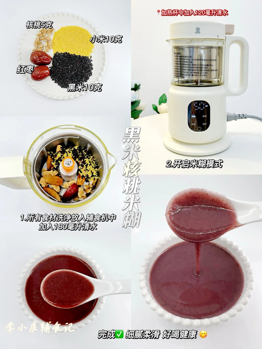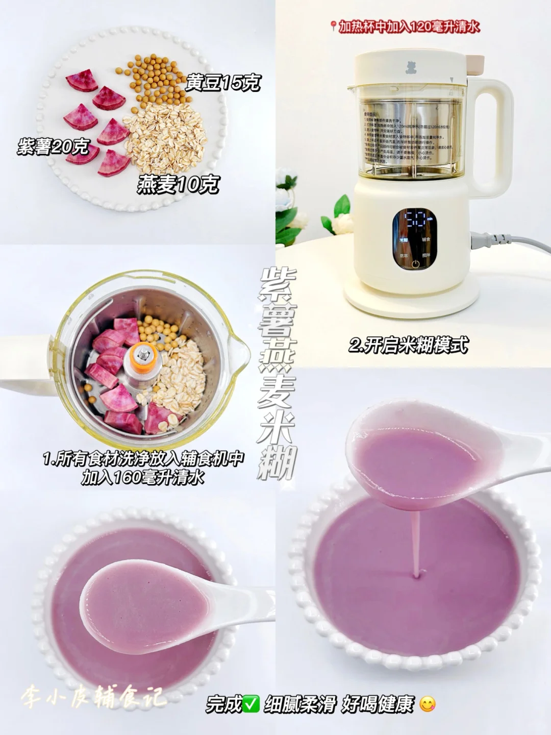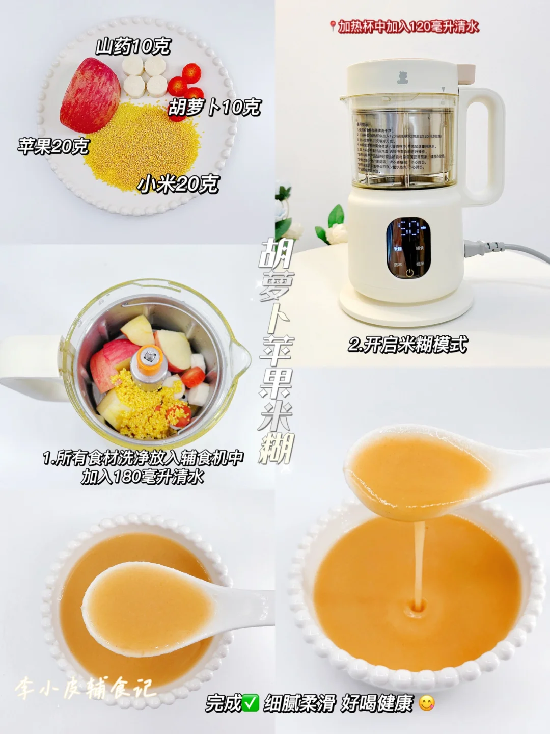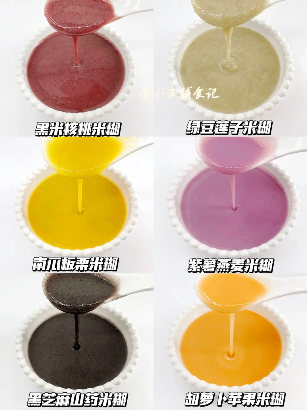 🍂天气越来越冷了,给宝宝添衣的同时,每天安排上一杯热乎乎的米糊,健脾暖胃又营养~ 今天分享6款秋冬暖胃营养米糊,做法简单好操作,大人小孩都爱喝,搭配早餐、下午茶点心太合适啦!越紧安排起来吧~ 🫶🏻 🥣紫薯燕麦黄豆米糊 食材:紫薯20克、黄豆15克、燕麦10克、180毫升清水 〰️ 🥣黑芝麻山药红枣米糊 食材:黑米10克、小米10克、核桃5克、红枣1颗、180毫升清水 〰️ 🥣绿豆莲子百合米糊 食材:百合5克、莲子5克、绿豆10克、胚芽米10克、180毫升清水 〰️ 🥣南瓜板栗米糊 食材:南瓜10克、板栗10克、小米15克、清水180毫升 〰️ 🥣黑米核桃红枣米糊 食材:黑芝麻10克、山药15克、胚芽米10克、红枣1颗、180毫升清水 〰️ 🥣胡萝卜苹果山药米糊 食材:山药10克、胡萝卜10克、苹果20克、小米20克、160毫升清水 🌟进入秋冬为了更好的解放双手,入手了小白熊家的辅食机,这款辅食机是可蒸、煮、搅、炖的一体辅食机,操作简单,无需看管;6叶304不锈钢刀盘,搅打出来的食物更细腻,全钢内胆,安全0塑料,给宝宝使用更放心,组建灵活 ,全部可拆,清洗方便无死角,妥妥滴省妈好物,推荐给麻麻们~ 🎈小提示: ▫️所有食材先排敏后再给宝宝食用喔 ▫️1岁以上宝宝可加适量冰糖 ▫️用到红枣的米糊需要去核后再搅打 ▫️干莲子比较大浸泡半小时以上再搅打会更细腻