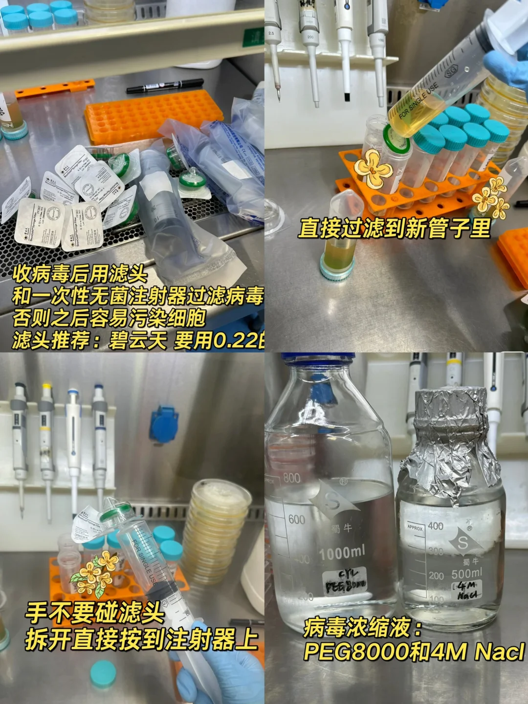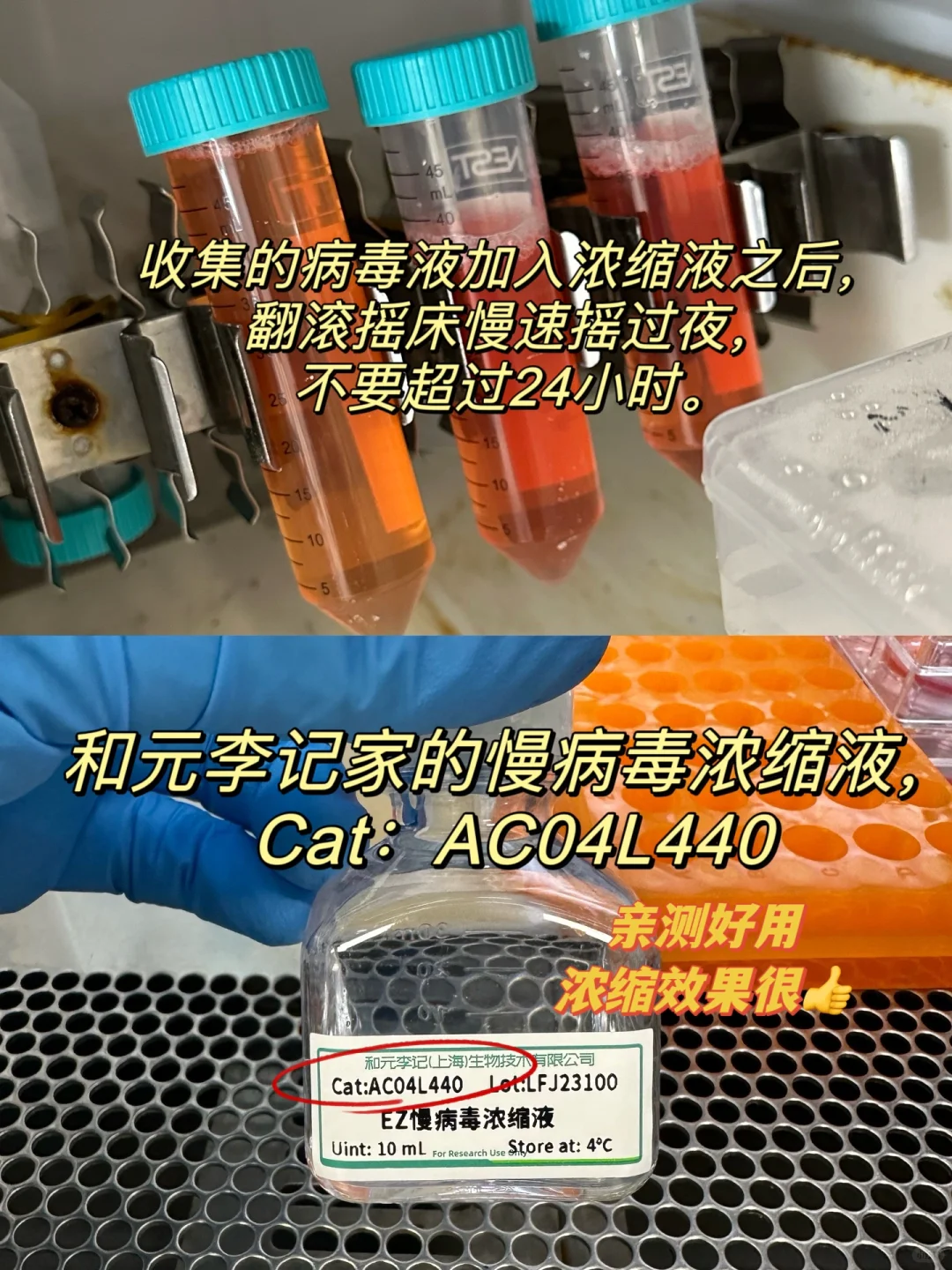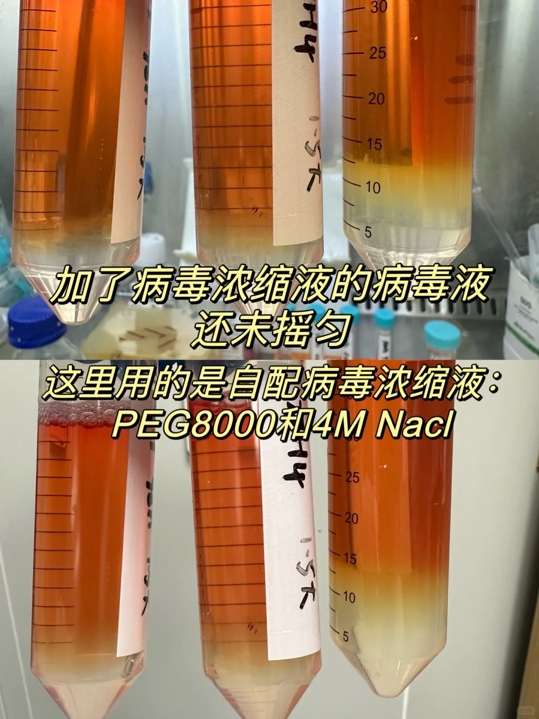 🧫如果有条件的宝子还是建议买商品化的产品去浓缩病毒,如果课题组原因,也可以自配,我之前也都是自配的,效果也还可以,只不过比和元的逊色一些,大家根据自己情况选择。