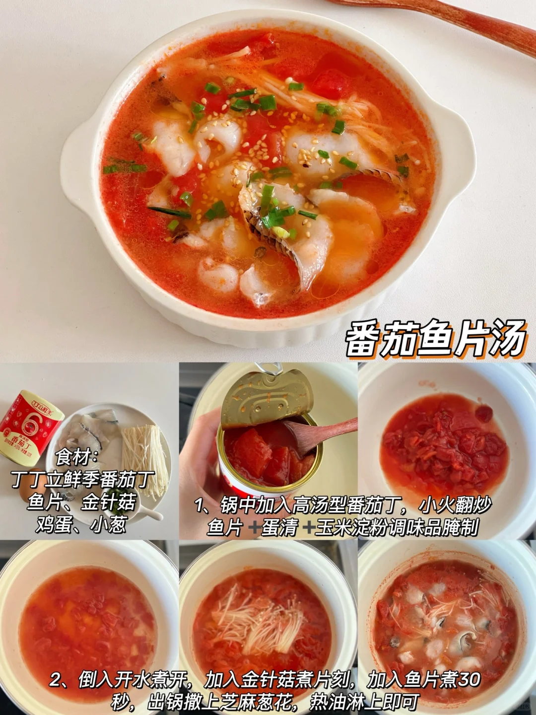 制作:鱼片加入盐、一勺玉米淀粉、一个蛋清、葱姜水抓拌均匀,最后盖上食用油备用,锅中倒入适量高汤型番茄丁翻炒、加入开水煮开,放入鱼片煮半分钟出锅,放调味品,最后放入芝麻和香葱,淋入热油即可
