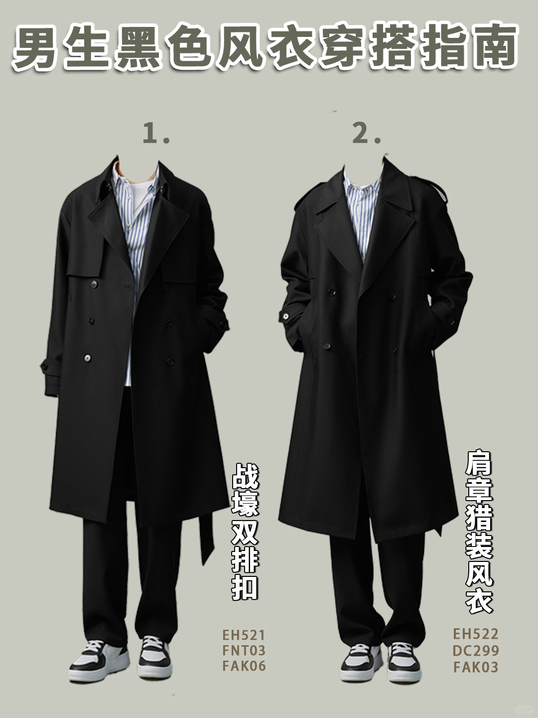 1️⃣ 战壕风衣搭配蓝白条纹衬衫