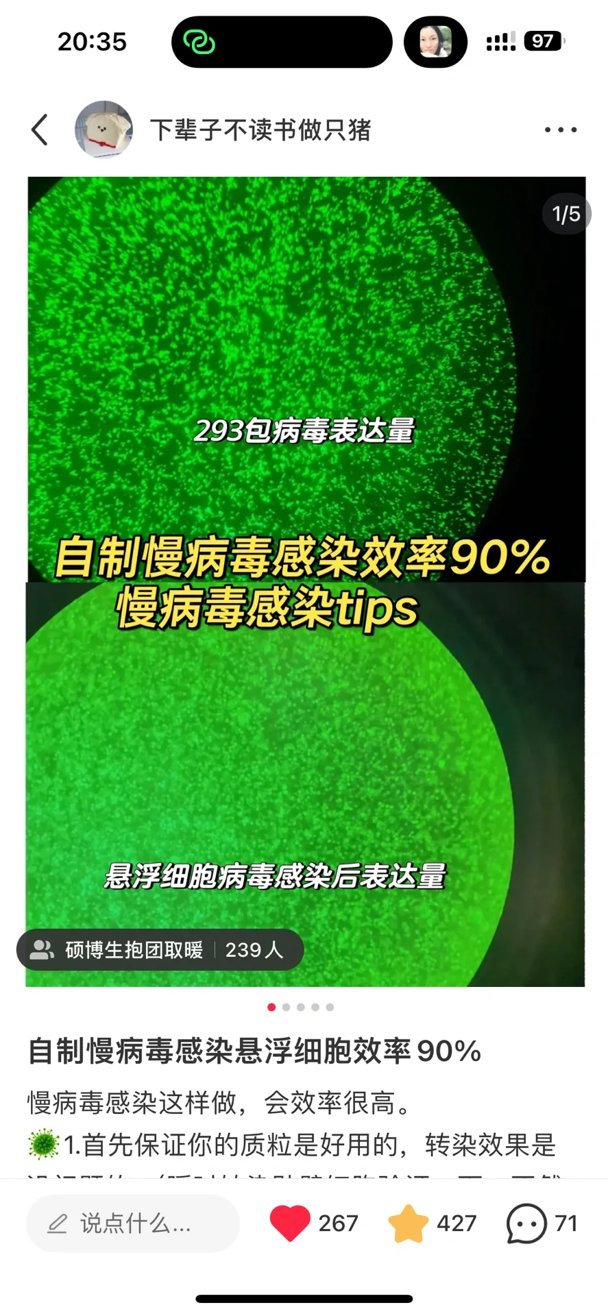 现在我基本不会因为慢病毒感染发愁了,已基本摸清楚细胞的尿性。