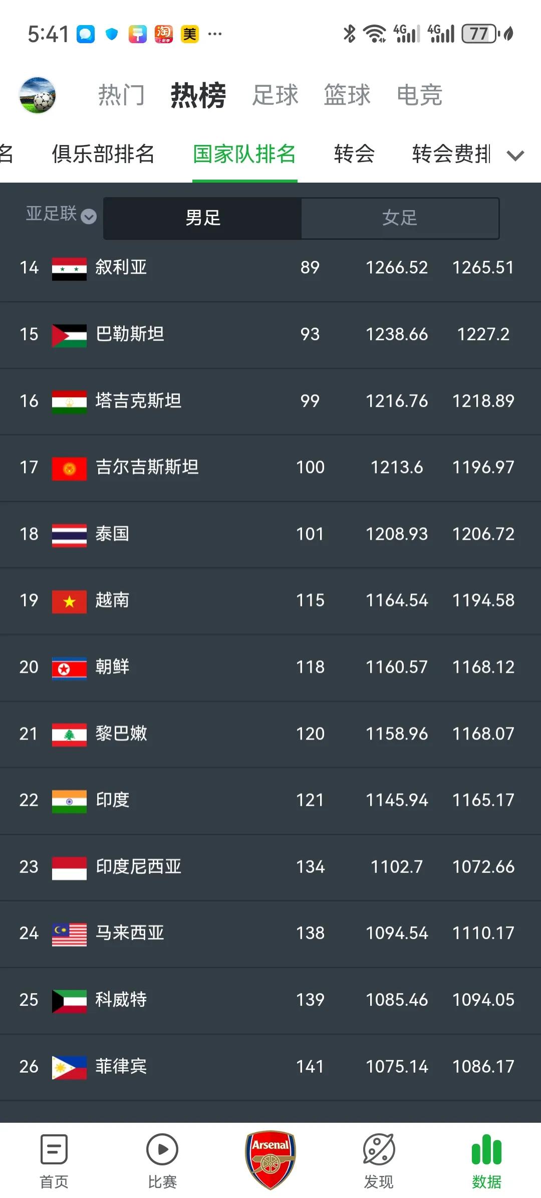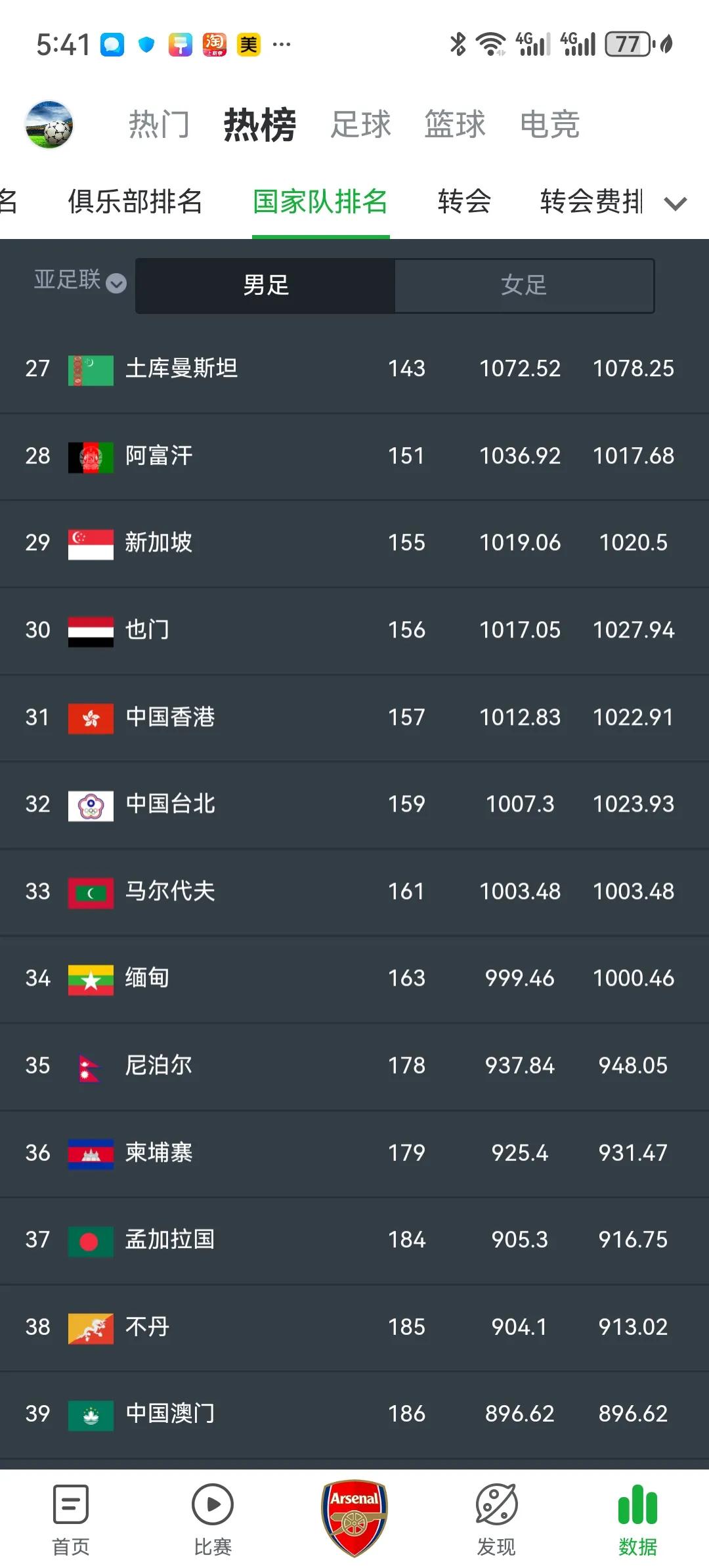 最新世界排名,国足排名世界第88名,亚洲第13名。值得一提的是,亚洲一共有46个国家和地区球队,世界一共有210个国家和地区球队,也就是说其实国足的下降空间还是非常大的[捂脸]