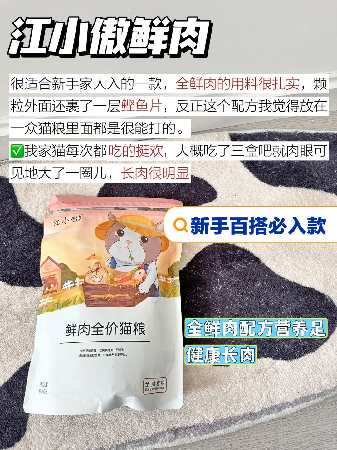 因为我自己也有养猫猫,今年刚开始,这次是想和各位姐妹分享一下养猫消耗品的top1—猫粮应该怎么选以及分享我自己喂过的不错的猫粮推荐。 像我这样选猫粮爱纠结的,有时候费大功夫选了一款猫粮,买回来猫咪不爱吃不说,有时吃了还会出问题。 所以说在选猫粮上,还是要从家里猫咪的需求和猫粮品控上出发,猫咪缺什么就给它补什么才是正确的选择,才可以真正做到“对症下药”。 我也顺便给大家分享几款我家里猫猫吃过的还不错的猫粮,搭配我自己喂下来的感受体会,姐妹们选粮纠结的可以做个参考 ✅江小傲鲜肉猫粮 新手百搭必入款! 全鲜肉配方营养足,健康长肉 ✅鲜朗鱼肉烘焙粮 美毛顺毛必入款! 原料新鲜,鸡鱼配方美毛护发鲜朗鱼肉 ✅皇家室内成猫粮 病号维稳必入款! 配方低敏,控制体重 ✅豆柴益生菌 调理肠胃必入款! 益生菌+消化酶,促进消化吸收 ✅百利无谷鸡 软便首选必入款 单一鸡肉无谷配方,软便克星