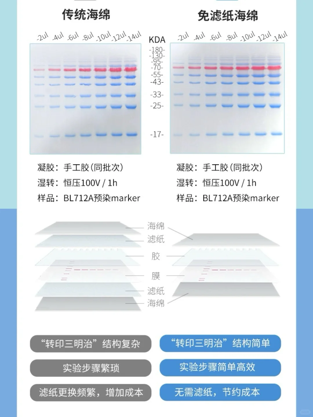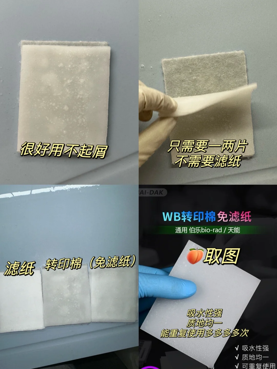‼️很多人反应wb转膜效率不够稳定,也就是这次转成功了下次就失败了,要么是条带歪歪扭扭,要么是蛋白“飘走了”,没有成功转到膜上,其实有可能是因为转膜材料的问题…