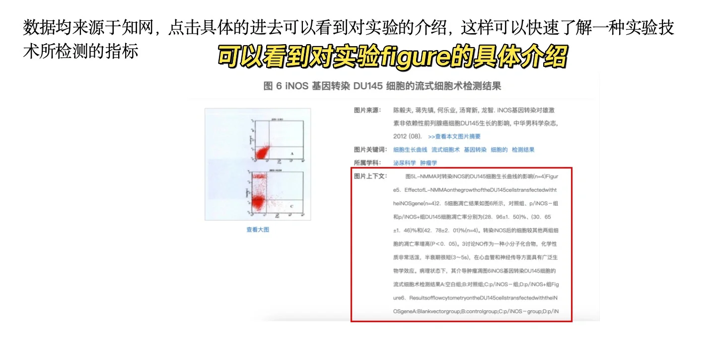尤其是实验小白,对各种实验一头雾水看文献根本不知道文献figure说了什么?但是一篇文献又没有系统的某类实验的归类,看的会很繁琐又有点累。 这时候我推荐大家可以先去看看CNKI学术图片库,进行实验技术相关搜索,而不是直接一股脑就去看文献浪费时间又看不太懂。 大部分实验技术都涵盖,可以看到具体的信息,实验怎么做的,figure该如何看。[耶R] 数据均来源于文献,例如:流式细胞术,免疫荧光,免疫共沉淀,免疫印迹等等。[可R]