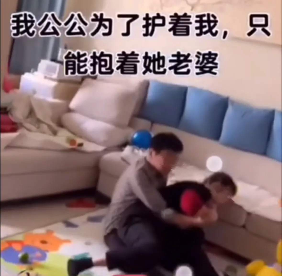 公公在一旁也很无奈,只好保住婆婆不放,害怕她情绪激动伤害到襁褓中的孩子和贺婷婷。
