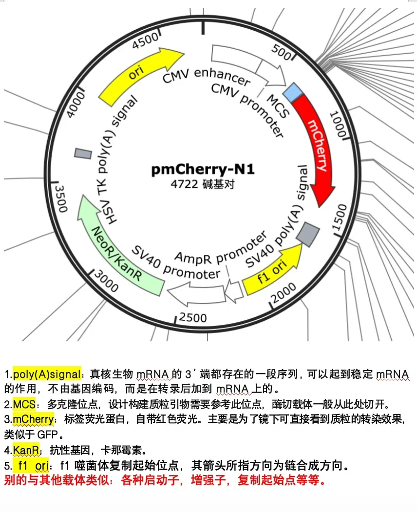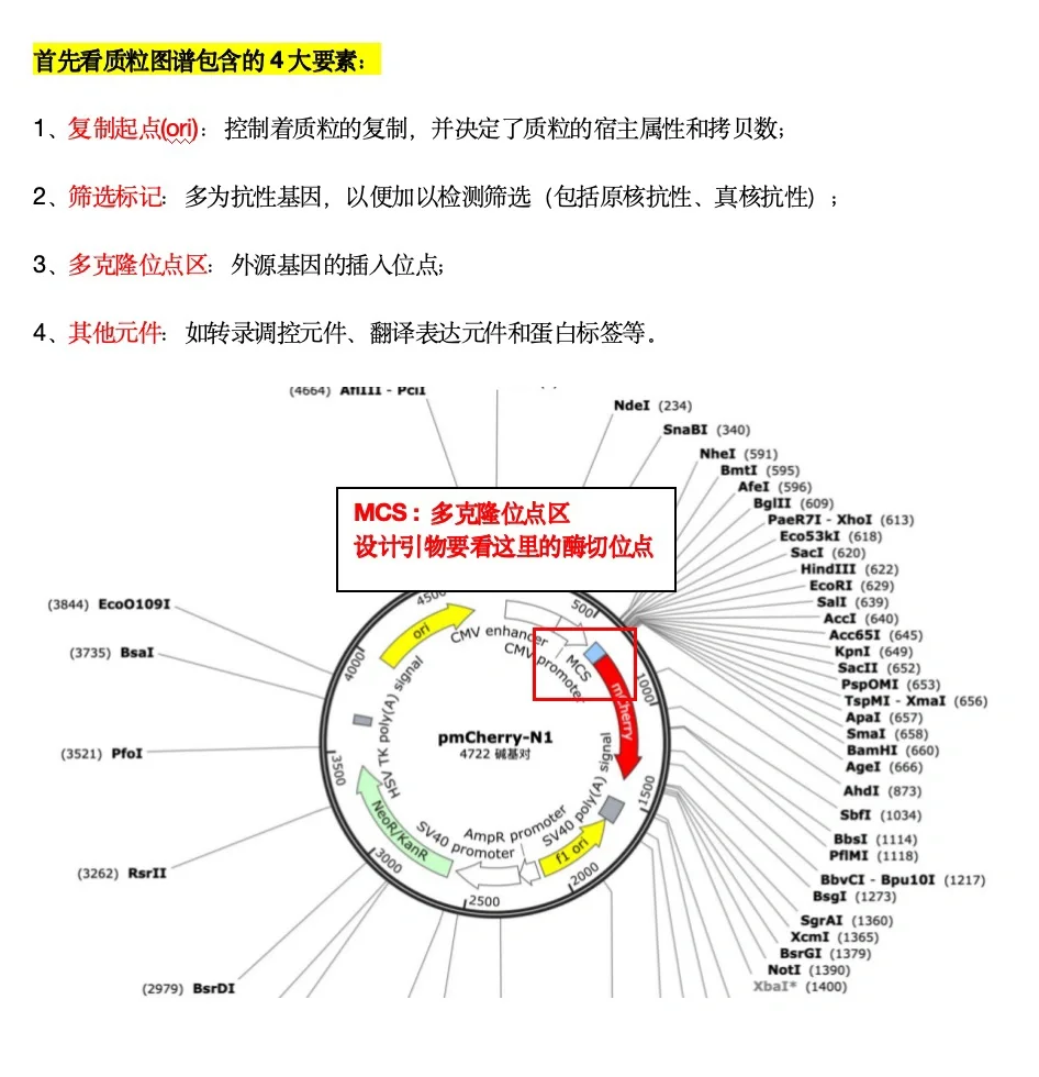 很多载体的元件其实都是有共性的,基本所有载体都需要,比如复制起点,多克隆位点(MCS)等。
