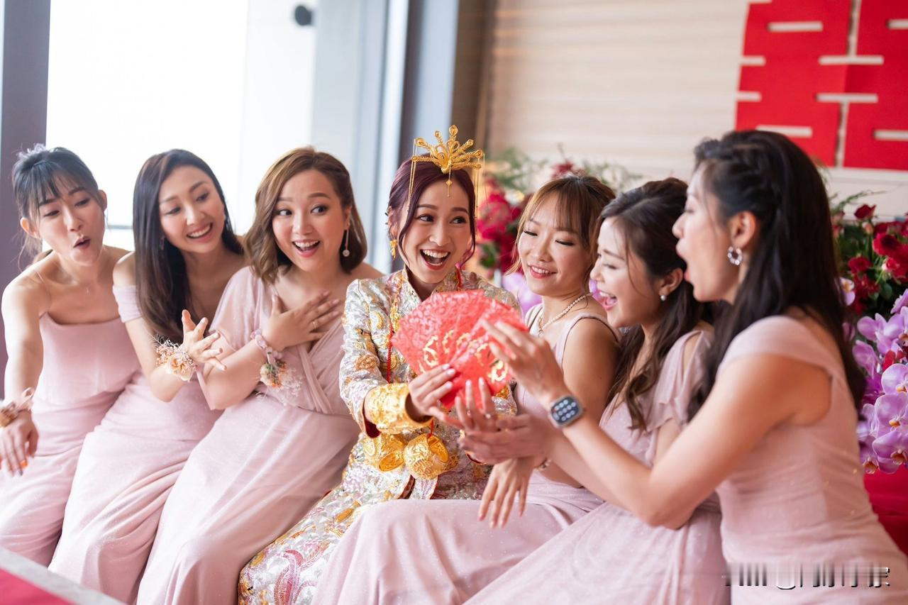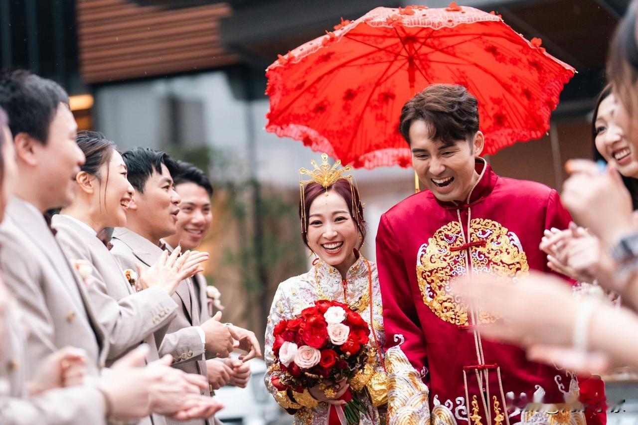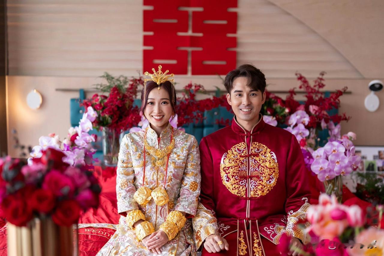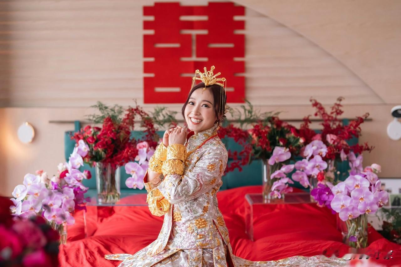 💖黄美棋锺健威结束11年爱情长跑,巨型龙凤镯如哑铃般份量十足! 💖恭喜恭喜!4月6日是黄美棋钟健威拉埋天窗大日子,他们选择在西贡五星级酒店筵开35席。早上也在同一酒店出门接新娘,一对新人以中式礼服示人,美棋身上戴满满载家人长辈祝福,3对超巨型流星锤龙凤镯超抢镜! 💖黄美棋锺钟健威结束11年爱情长跑,获星级兄弟姐妹团,包括曾一齐主持《流行都市》而成为好友「大小姐」林淑敏、林奕匡太太李霭玑、HOY TV一姐「妹头」卢颂恩、黄芳雯及虞逸峯等鼎力支持。 💖4月6日早上他们在酒店出门及进行敬茶仪式,延续过大礼时盛况,一对新人以豪华中式礼服现身,美棋身穿手工绣满金线的褂皇出嫁。新娘子身上金器相当奢华,别致金头饰以外,3对超巨型流星锤龙凤镯,犹如平日珠宝店镇店之宝般浮夸﹗﹗左右手各2只龙凤镯已无空位,似足哑铃般令人担心美棋双手能否举起。#春日生活打卡季#