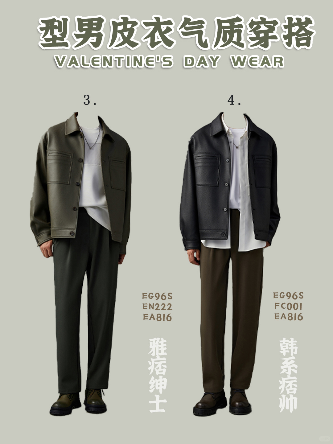 PU皮衣夹克+抗皱免烫长衫+单褶休闲西裤