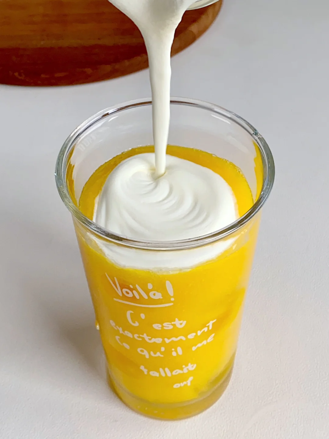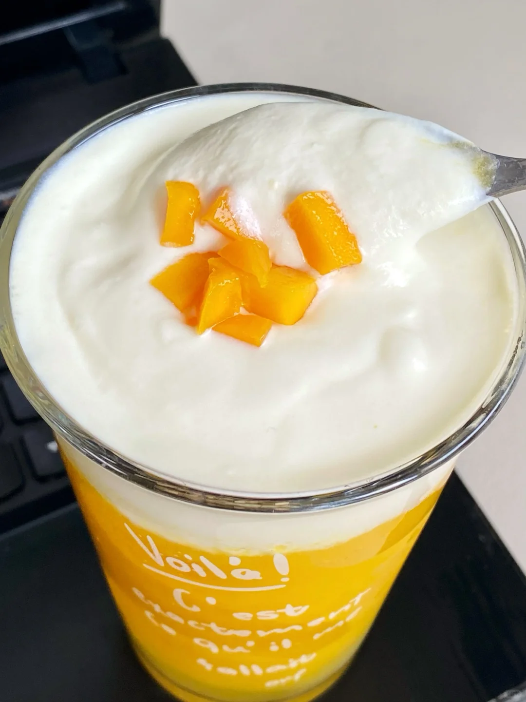 啊啊啊啊自己做的芒果奶茶也太好喝了吧😭 香香甜甜的!奶香奶香的!口感真的太赞了 芒果的香甜搭配清爽的红茶和奶香奶香的奶盖,一口下去好满足~满嘴的奶香和水果的清甜!! 真的好好喝!一口一口的根本停不下来~ 📝芒果、红茶、牛奶 🥣做法: ❶芒果去皮加牛奶打成汁 ❷杯中加入冰块倒入泡好的红茶至3分满 ❸倒入芒果汁至7分满 ❹牛奶加适量糖打发成奶盖 周末家里聚餐做了一次给家人喝,真的被全家人夸! 自己做料好足!奶香浓郁!真的爱了爱了!!