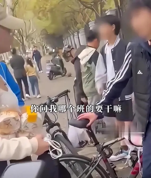 通过现场视频来判断,事发时应该是放学或者上学的路上,几名骑着自行车的男学生因见女子长得年轻漂亮,于是上前去调戏和索要联系方式时被怼的。