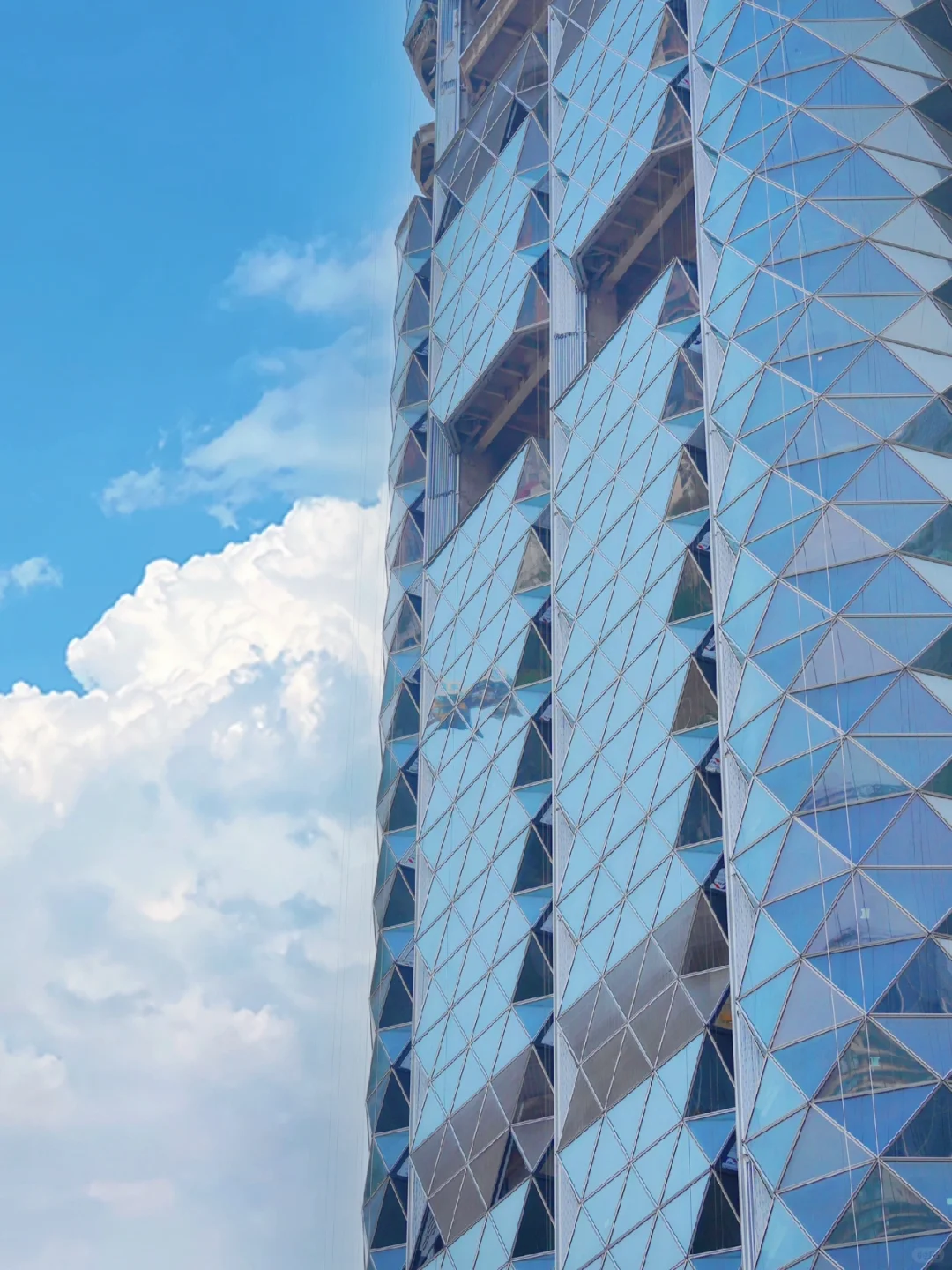 外层的玻璃幕墙如同切割过的钻石,即使是阴雨天也有别样的氛围感!