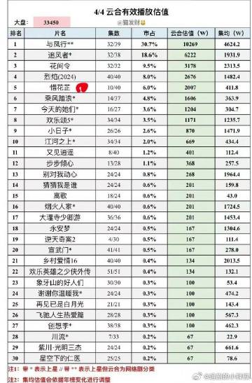 仪的惜花芷为什么扑了?云合评级A+,目前集均不到500w,按这涨势下去破不了2000w,这剧对标同期95花古偶也是垫底,甚至不如周也的护心