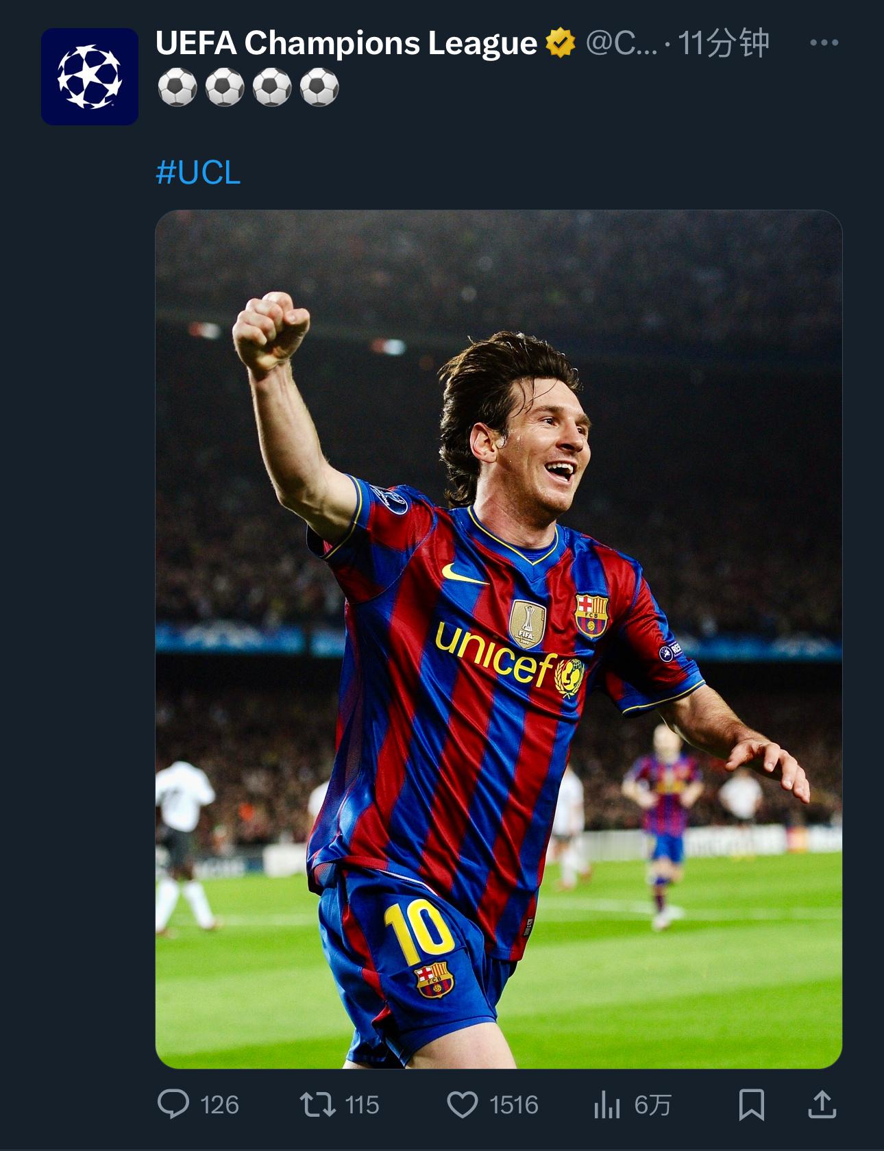 欧冠官推:⚽️⚽️⚽️⚽️#梅西[超话]##欧冠#