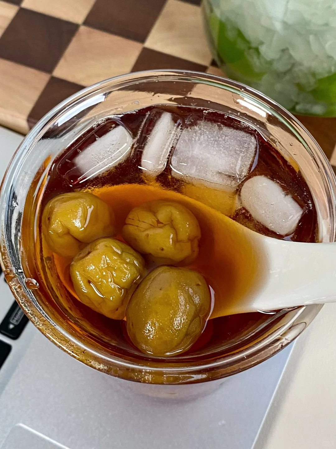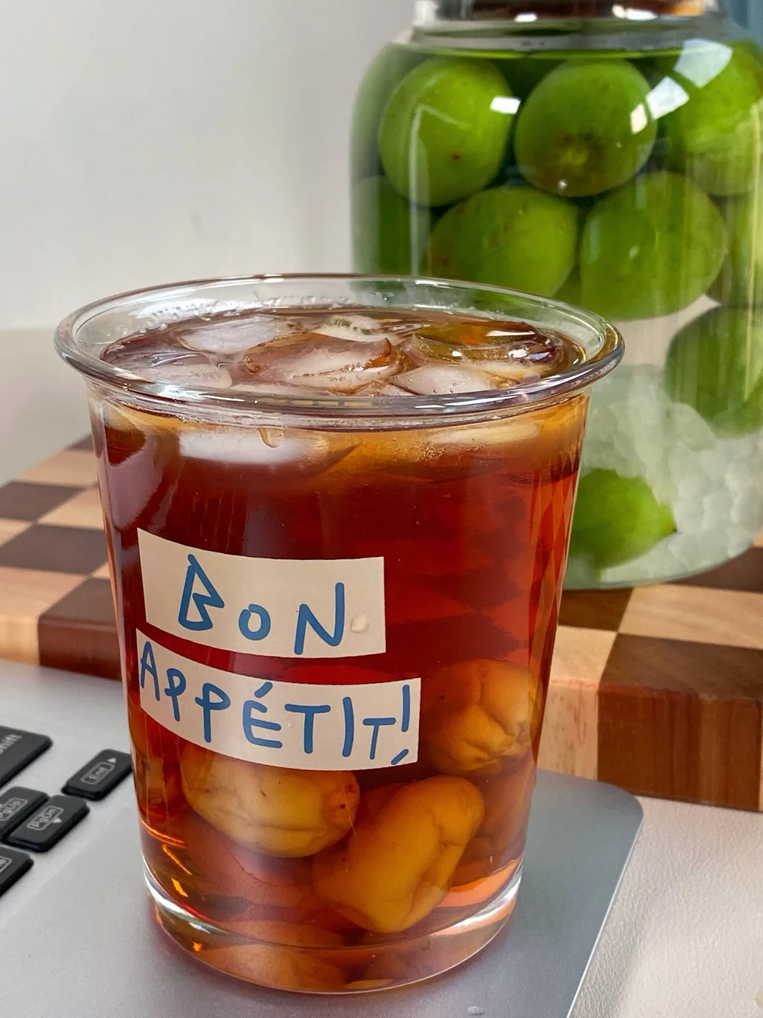 开了去年泡的青梅酒,真的超好喝!酸甜适合,很适合女孩子喝!!