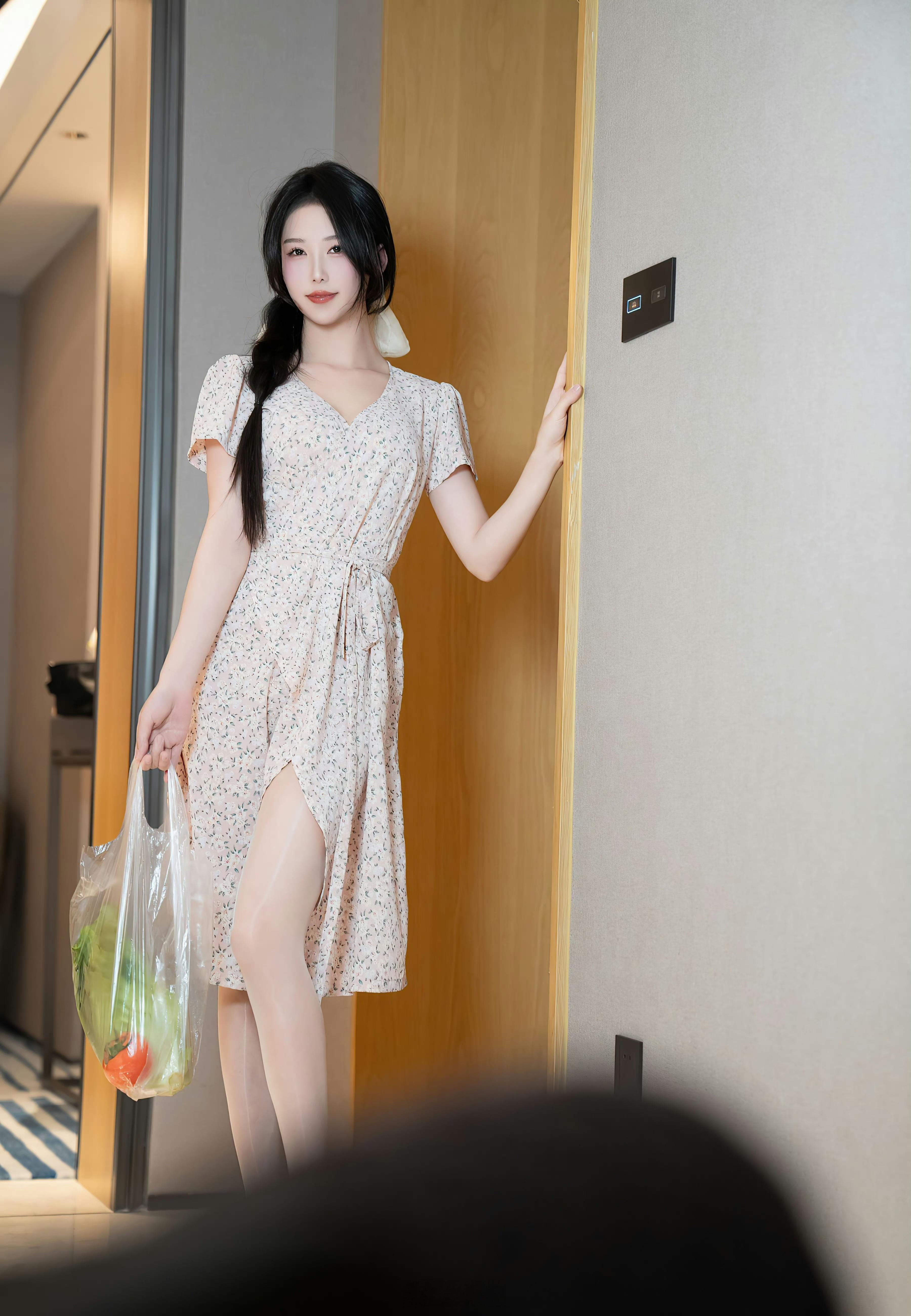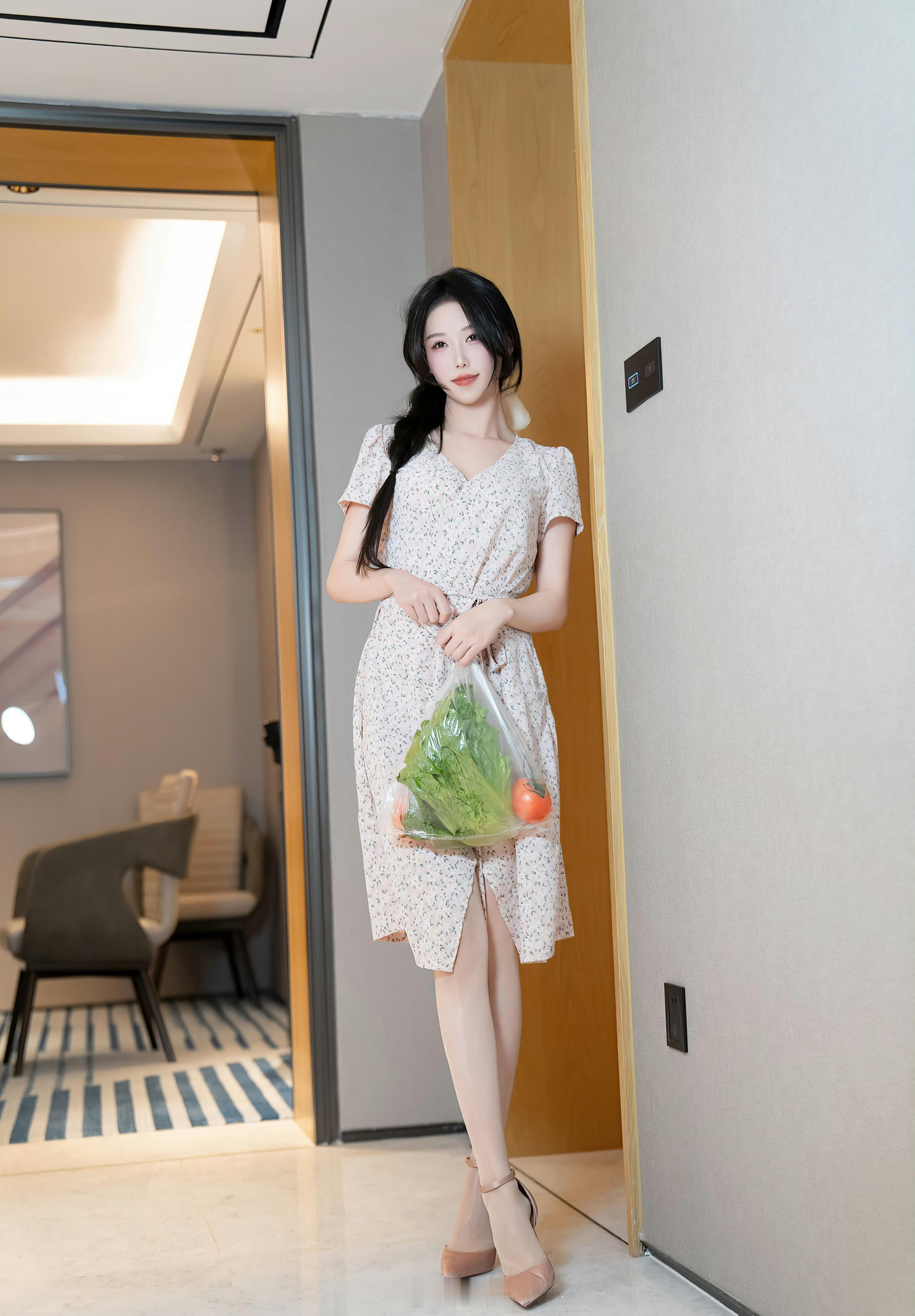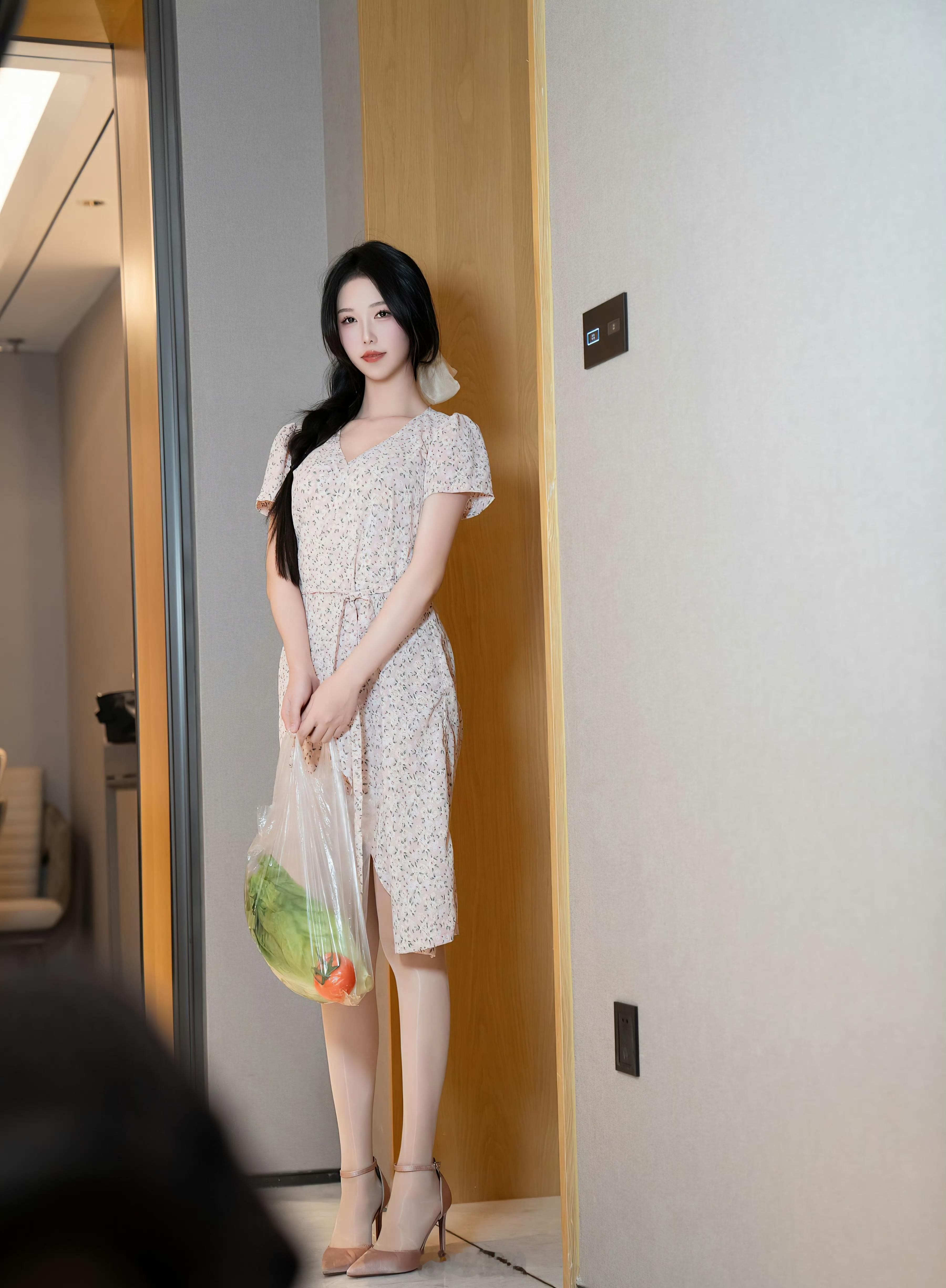 买菜的女孩到家了