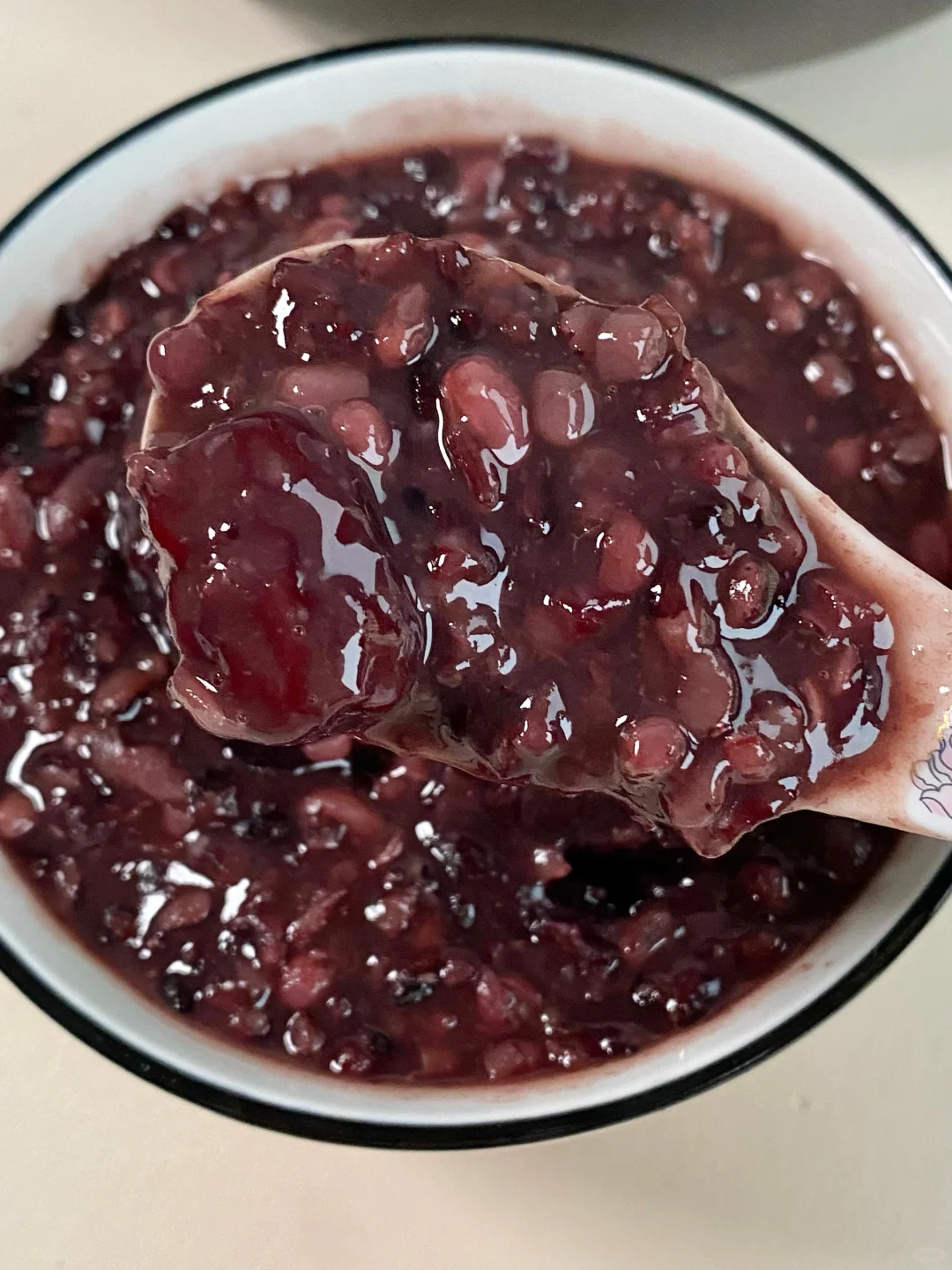 我妈妈经常给我做这个!因为我老是熬夜…😭 经常熬夜、手脚🧊冷的姐妹都给我去喝!! 每周坚持喝一碗!给我100张面膜也不换!! 早餐就馋这一口!香香甜甜的!糯叽叽~贼香浓! 📝食材:红豆、黑米、花生、糯米、红枣、红糖 🥣做法:食材提前净泡2小时、洗净放入电饭锅加入适量清水,按煮粥模式,煮好后加入枸杞和红糖搅拌均匀 都是对女孩子友好的食材!!五谷杂粮!! 女孩子可以多多喝!贼好喝~营养又美味!