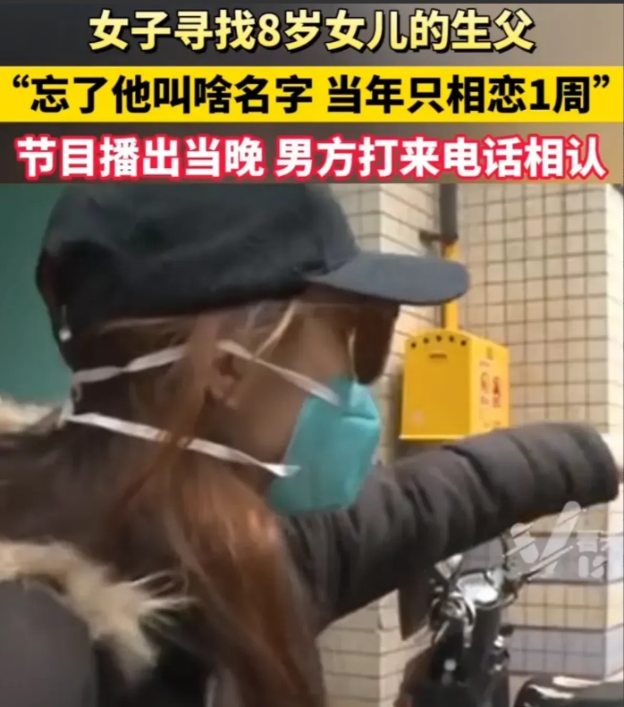重庆,一女子八年后突然求助媒体,说要给她8岁的女儿找爹。不料,求助信息一经发出去,就有一名男子打来了电话。原来,女子刚失恋,去酒吧解闷,就遇见了一名男子。两人发生了关系,确立了男女朋友的关系。不料,两人相处一周,女子还是忘不掉前男友,于是分手。可女子却发现自己怀孕了。女子决定将孩子生下来,然后独自抚养了八年,直到女儿想找爸爸了。网友:一个敢找,一个敢认!