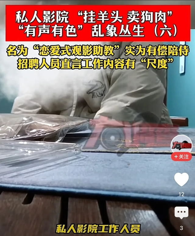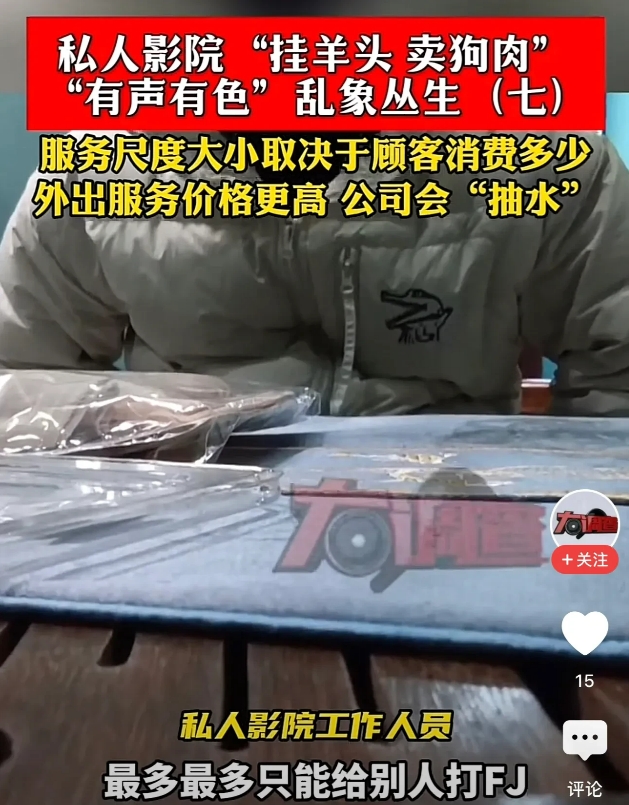 影院工作人员还表示,店里不涉黄,最多最多可以给你打FJ,如果说客户愿意给小费,你在包厢里面这个都没关系,我们还有三家店,现在就是缺妹子。