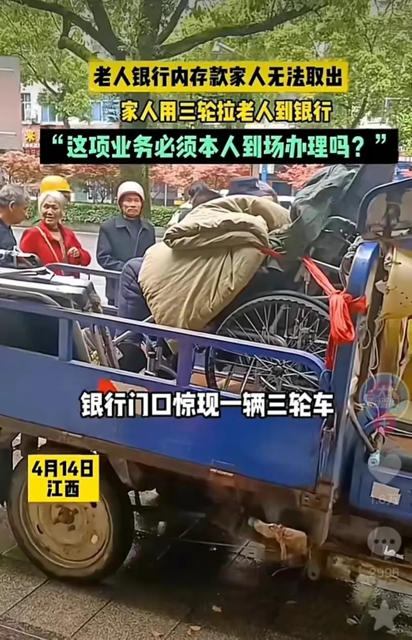 “离大谱!”4月1日,在江西,一位老人在银行存了钱,他的家人拿不出来。你说这个焦虑的人不焦虑吗?当家人看到这一点时,他们别无选择,只能用三轮车把老人拉到银行。 作为服务业的代表,银行应该考虑不同群体的需求。老年人是我们社会的重要组成部分。他们一生都在努力工作。他们节省的钱是他们晚年的保证。银行在办理业务时,应多加理解和关心,为他们提供更贴心、更人性化的服务。 作为民生的主要服务机构,银行不能从群众的角度考虑这件事。如果银行工作人员家里的老人也有这样的事情,他们还应该用车把老人送到银行吗?从另一个角度来看,你不能理解老年人的困难吗?银行很难上门处理吗?像这样的老年人并不多,如果上门服务,他们也可以留下良好的声誉。