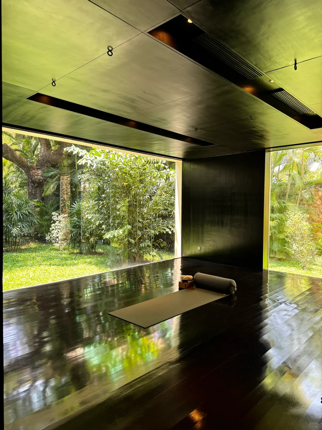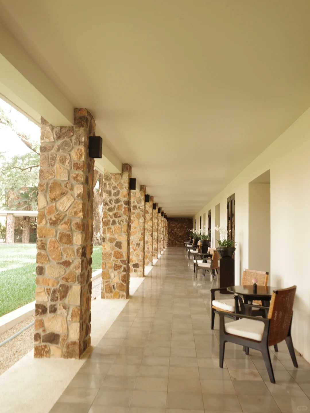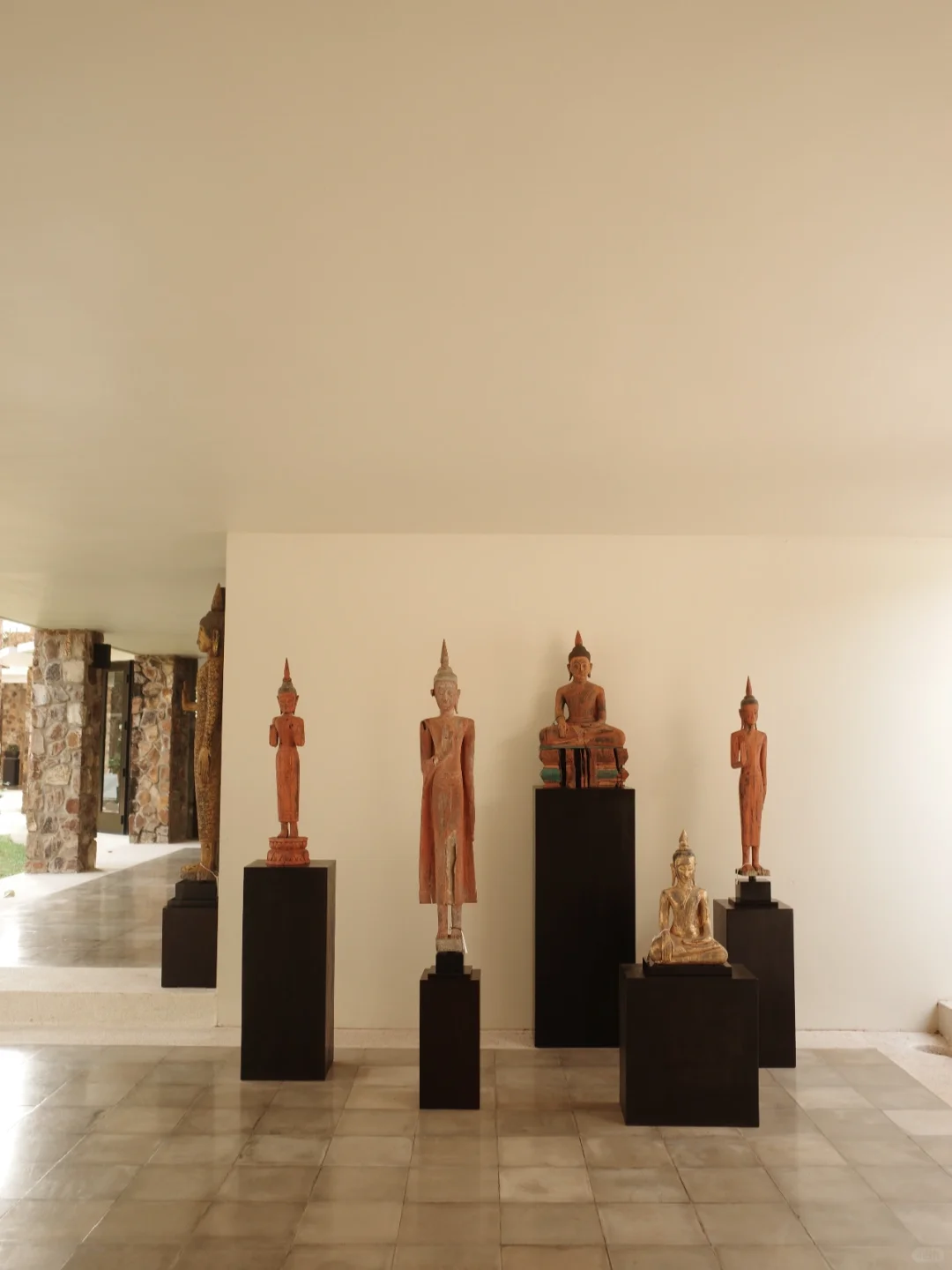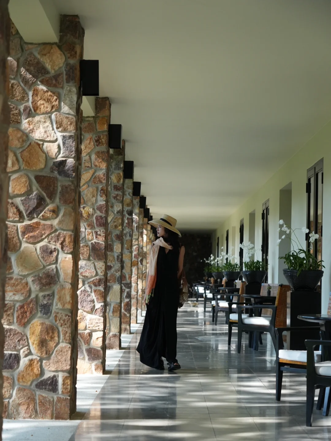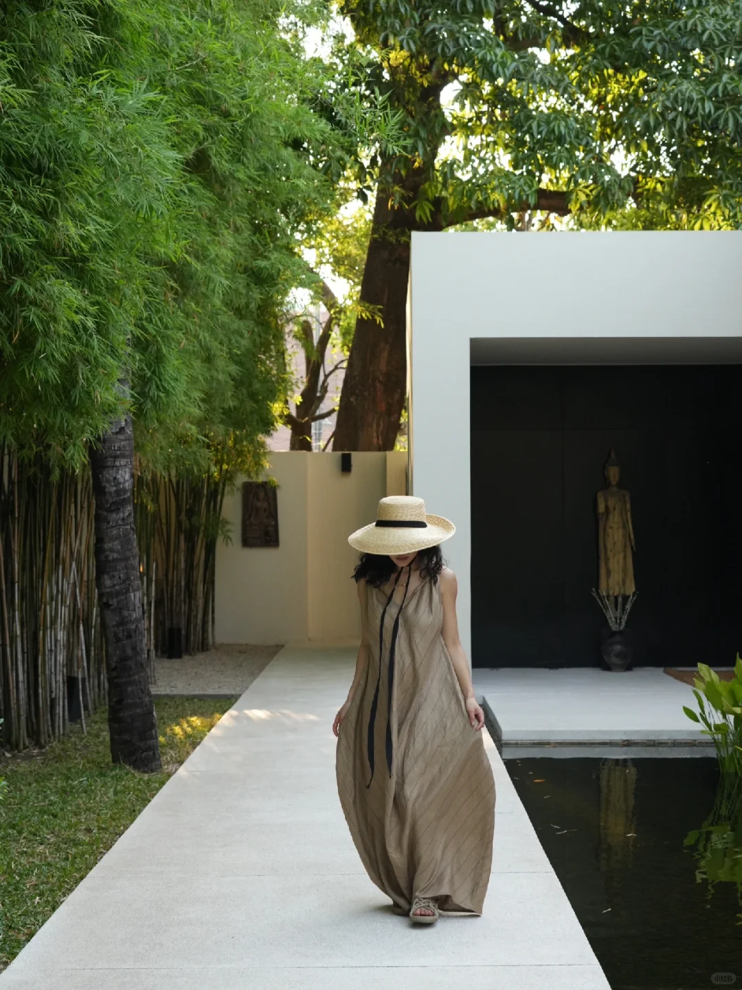 酒店风格源自1960年代新高棉建筑,依旧出自安缦御用设计师Kerry Hill,和海岛的度假风格不同,几颗上了年纪的老树宣告了它不被打扰的宁静,长廊的佛像自有禅意,