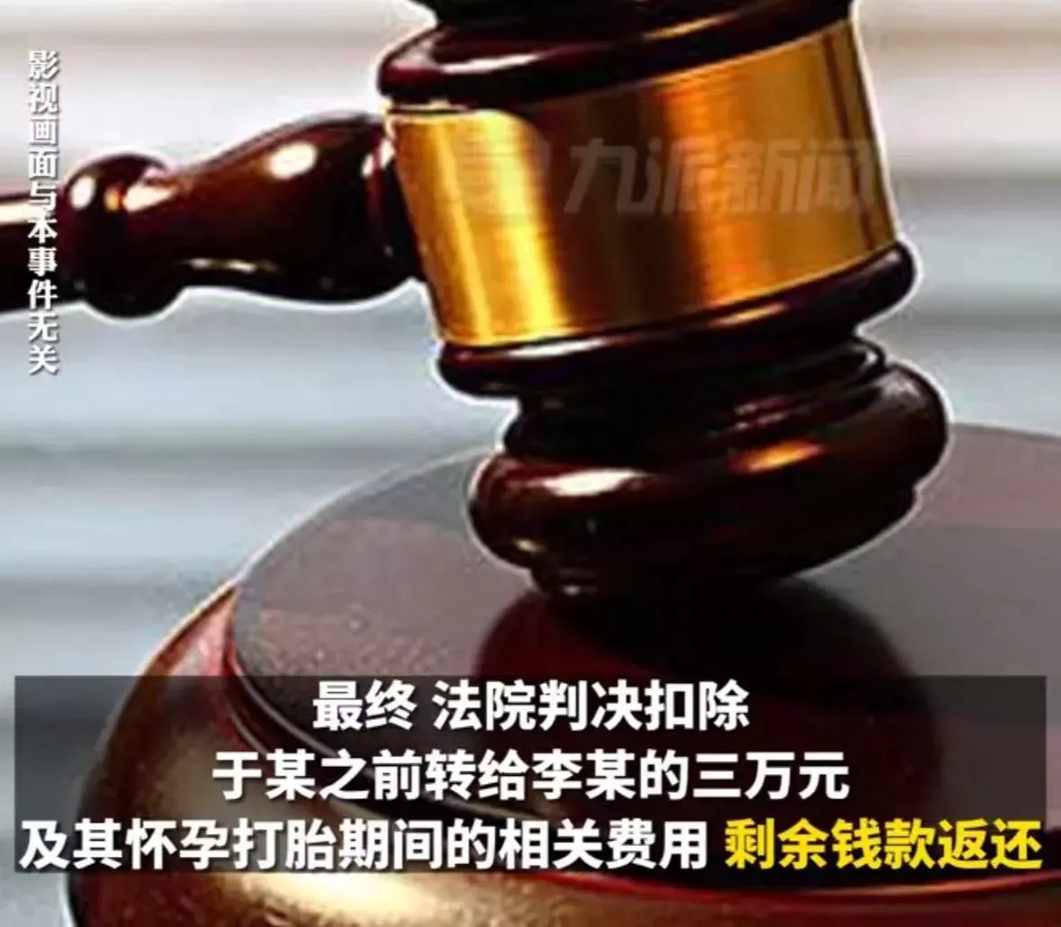 最终法院判决:除过之前刘梅给马大勇支付的3万元,以及打胎的医疗费,剩余钱款刘梅全部返还。