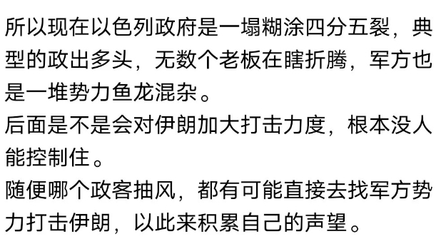 美国终究还劝不住以色列,现在伊朗不怕打,美国不想打,以色列不得不打,准备讲是内塔尼亚胡不得不打,因为不打它就玩完了,所以这个扣还是在内塔身上,如果美国真不想被内塔拉下水,要么换了它,要么干掉它!
