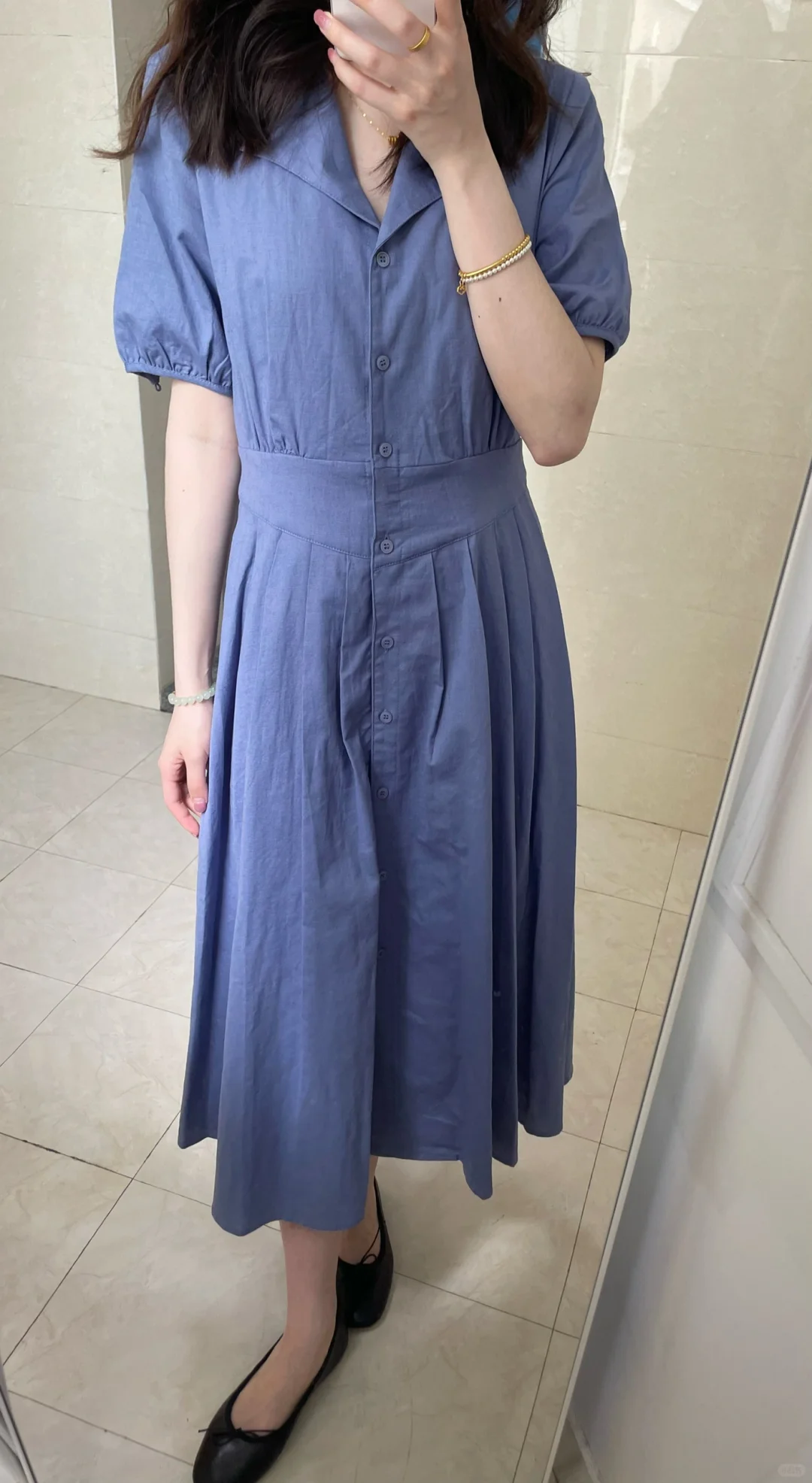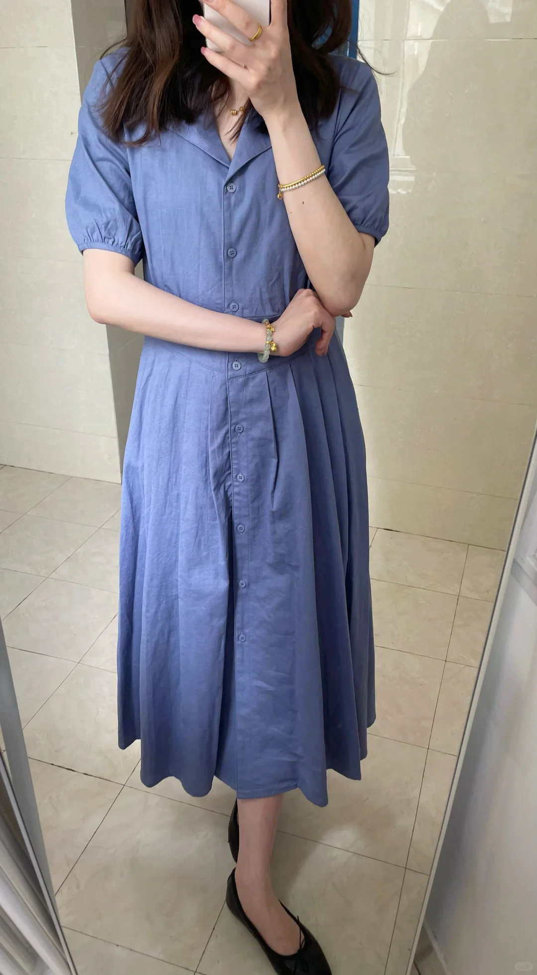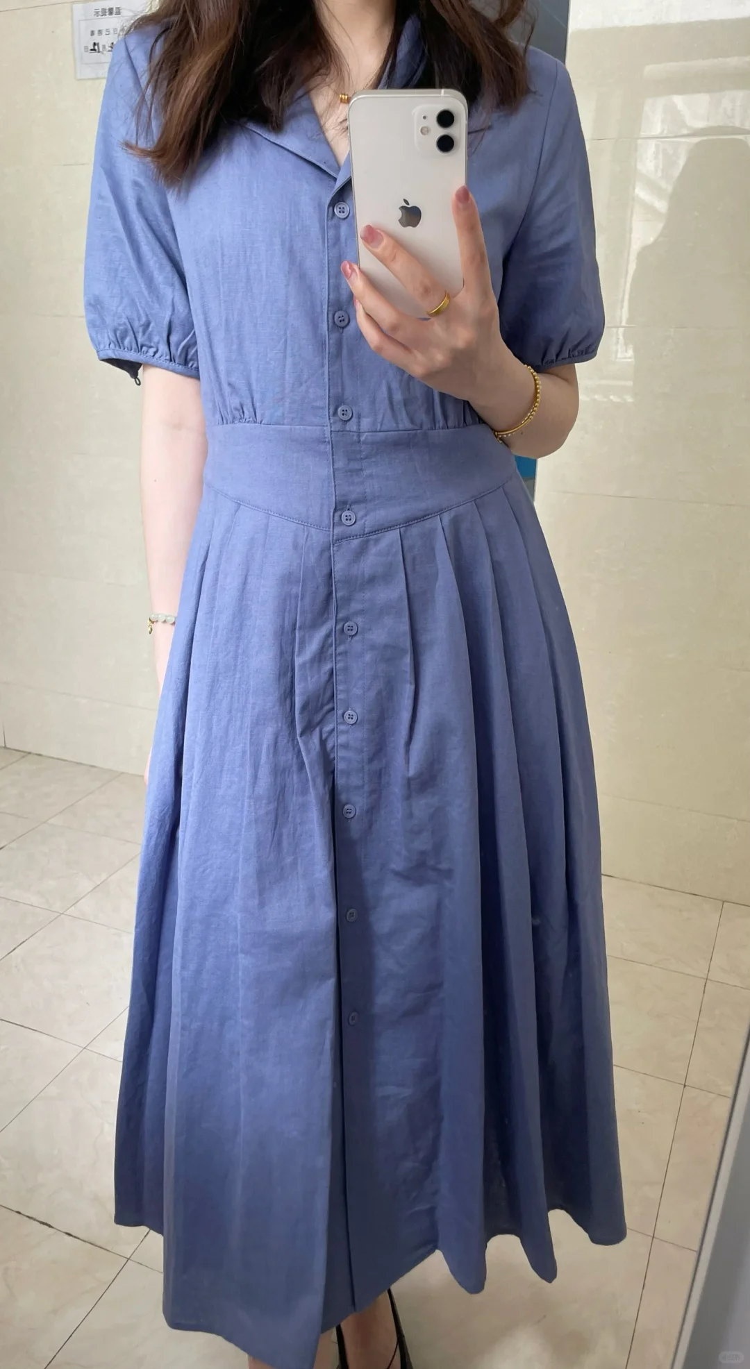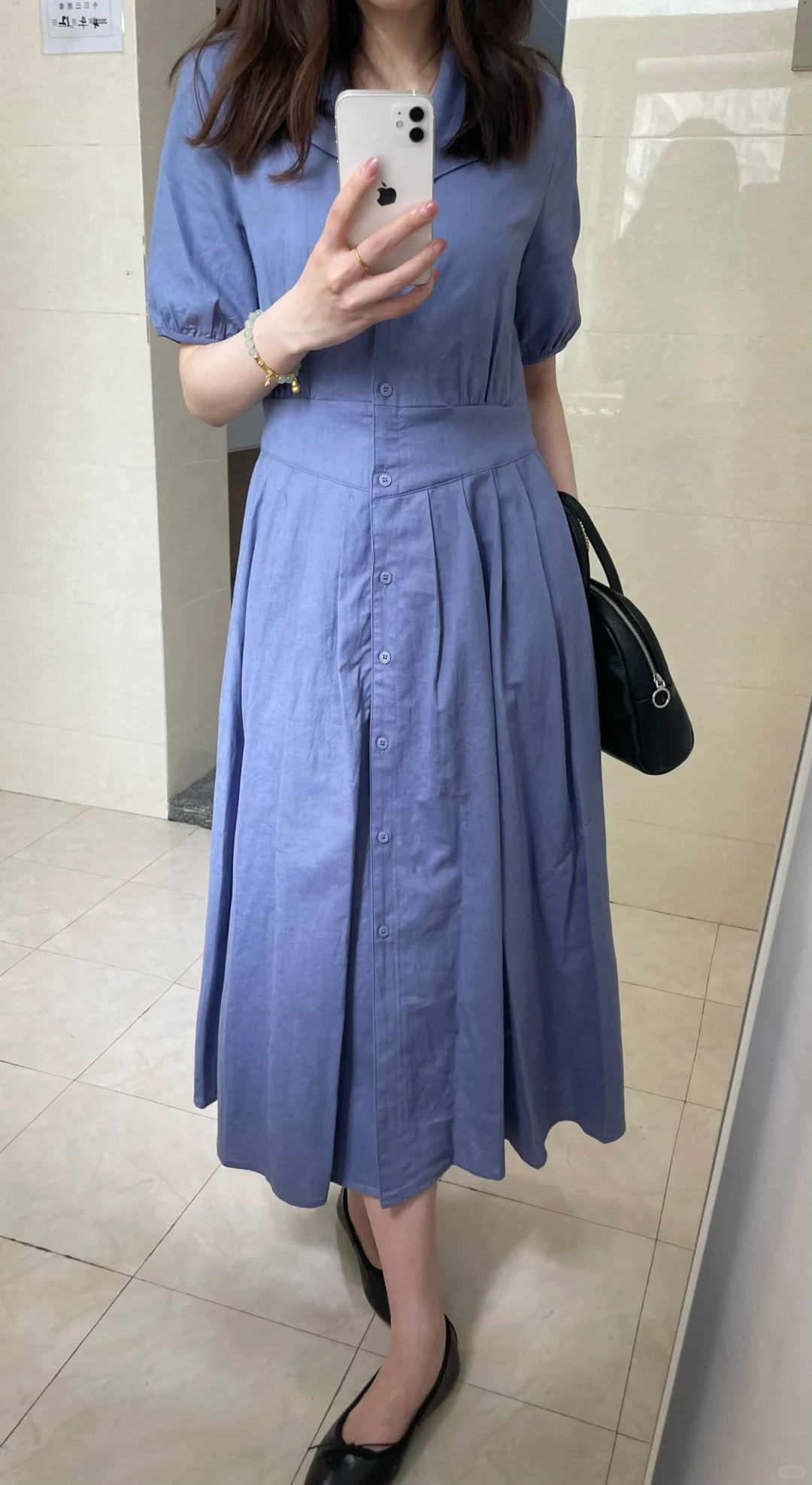 蓝色V领连衣裙简直是高端女神范儿的标配,商务场合穿它气场直接拉满!束腰让身材
