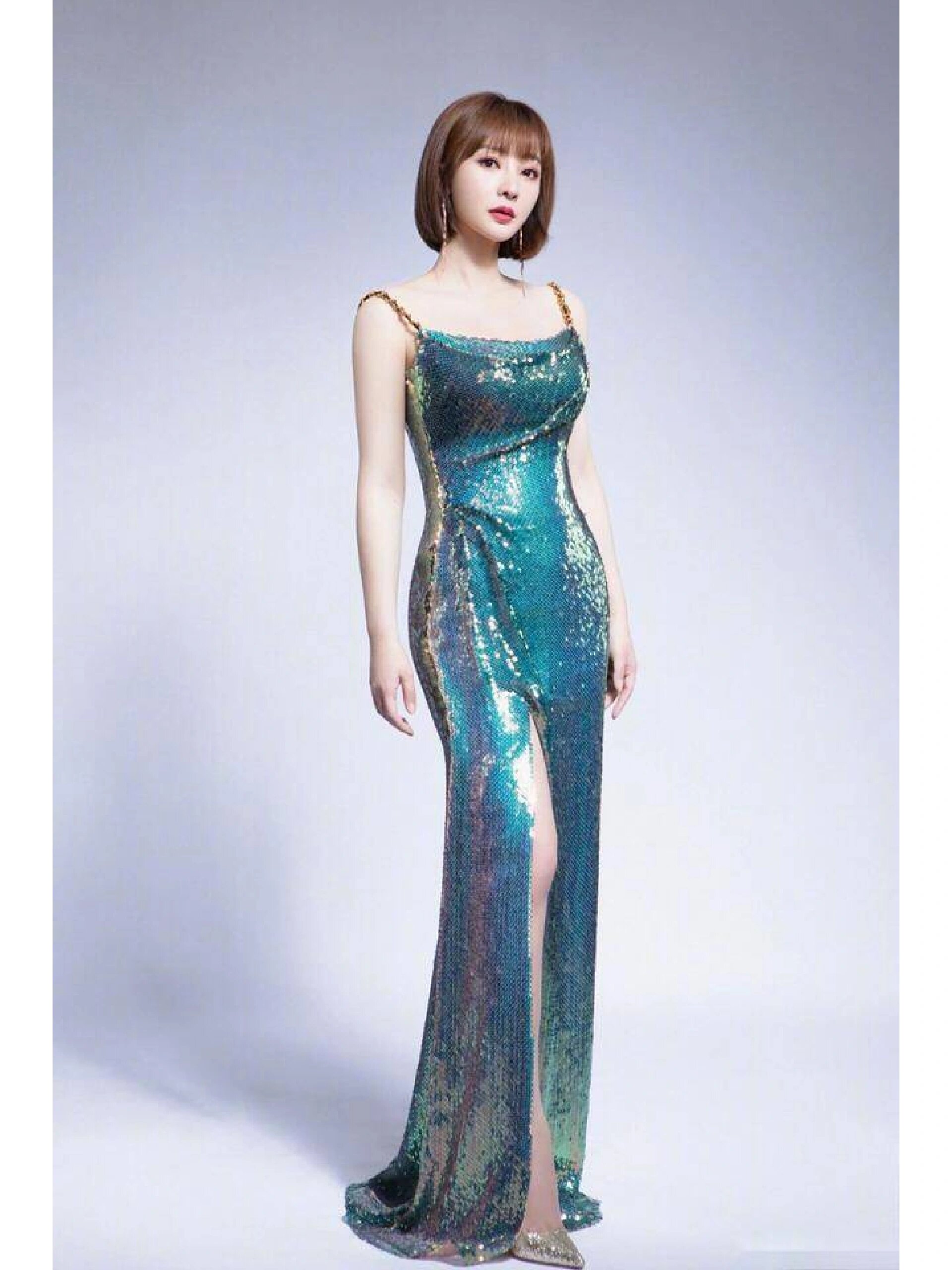 柳岩穿亮片修身长裙,肤白貌美大长腿惹人羡慕,真的太漂亮了