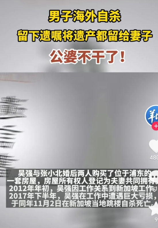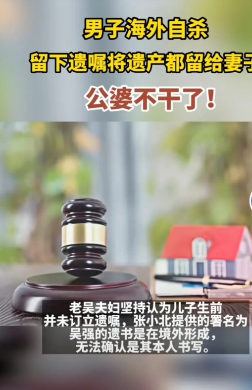 上海,夫妻俩结婚3年后,丈夫去新加坡工作。不曾想,5年后工作遇到危机,男子竟跳楼自杀,自杀前,他留下2份遗嘱,把所有遗产都归妻子继承。他死后,其老母亲和妹妹签署了放弃遗产继承的协议。谁知女子回国办理房屋过户时,公婆却不承认遗嘱是真的,要求按照法定继承分割,女子一怒之下,把公婆告上法庭,最后法院这样判了!