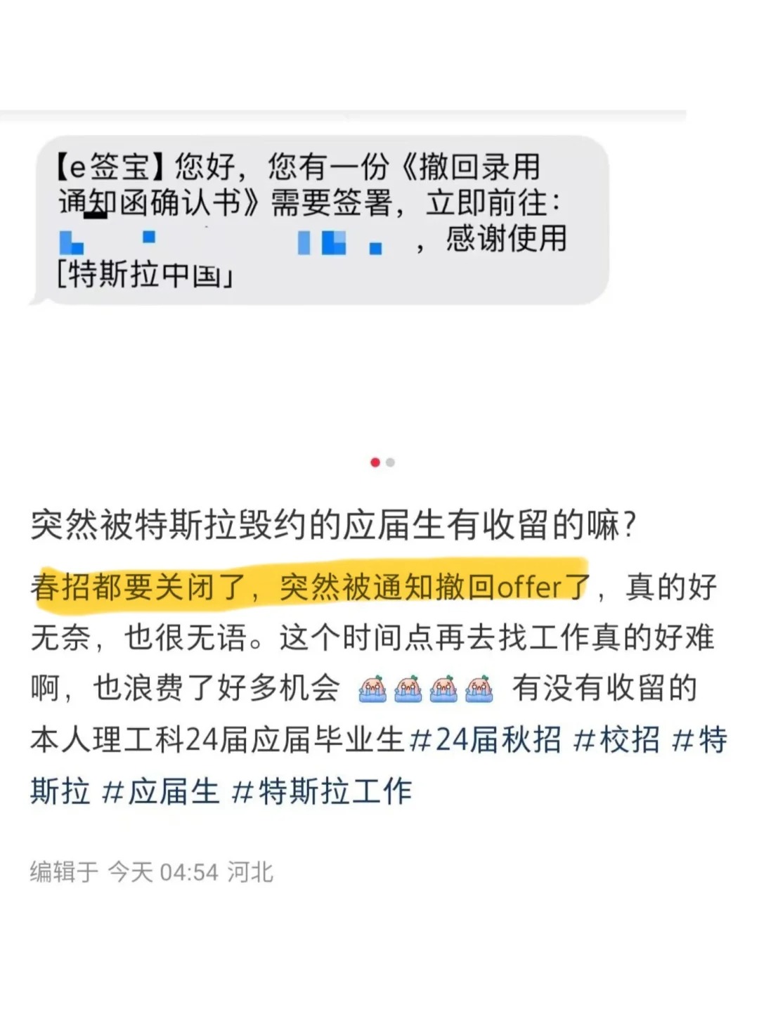 特斯拉毁约?极氪决定接盘! 特斯拉被曝毁约全部2024届应届生,只提供一个月底薪赔偿 吉利老总听说后,打算重新开放校招通道,给优秀应届生更多机会 看来新能源战终于是从用户打到了员工,不知道极氪这波能否挖到宝