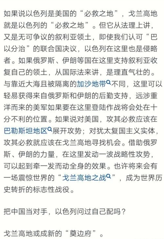 攻其必救?中东地区大国没有意愿去和以色列大打的情况下,就靠哈马斯这些小势利骚扰,以色列没有构成生死存亡的威胁,美国最多只是协助一下,根本不可能大刀阔斧的大打。再说了以色列本来就是美国放在中东的丁子,用来牵制中东地区几个大国的,以色列只要不是被灭国的情况下,美国不会大动肝火