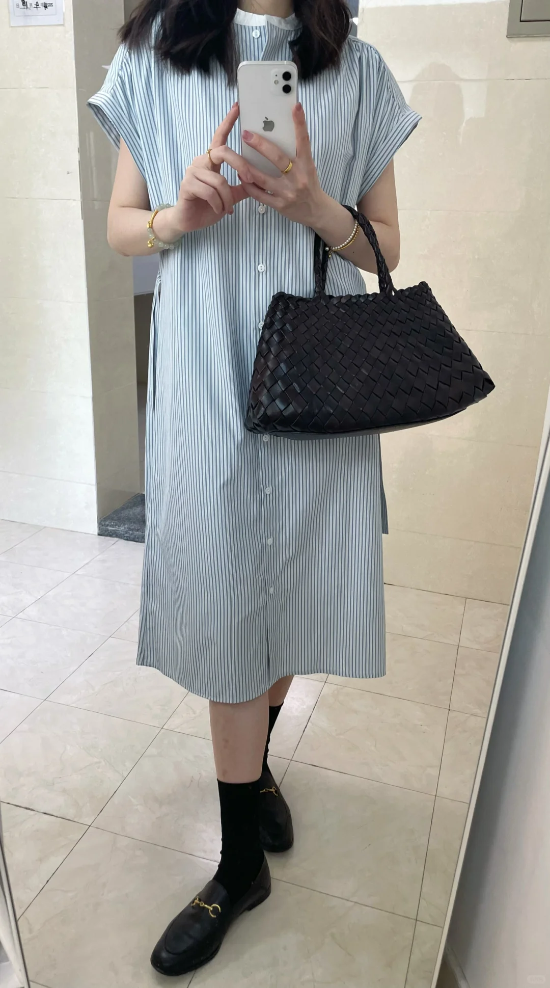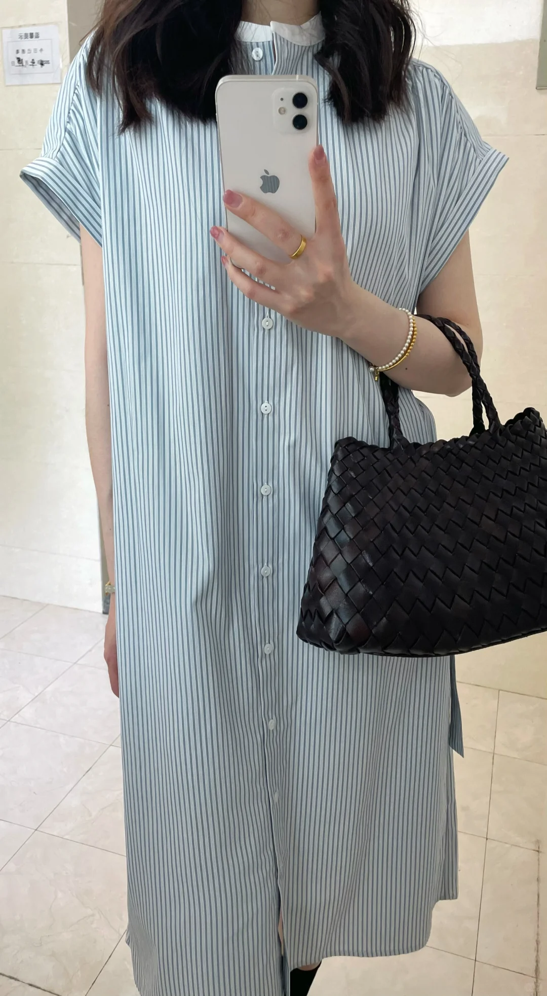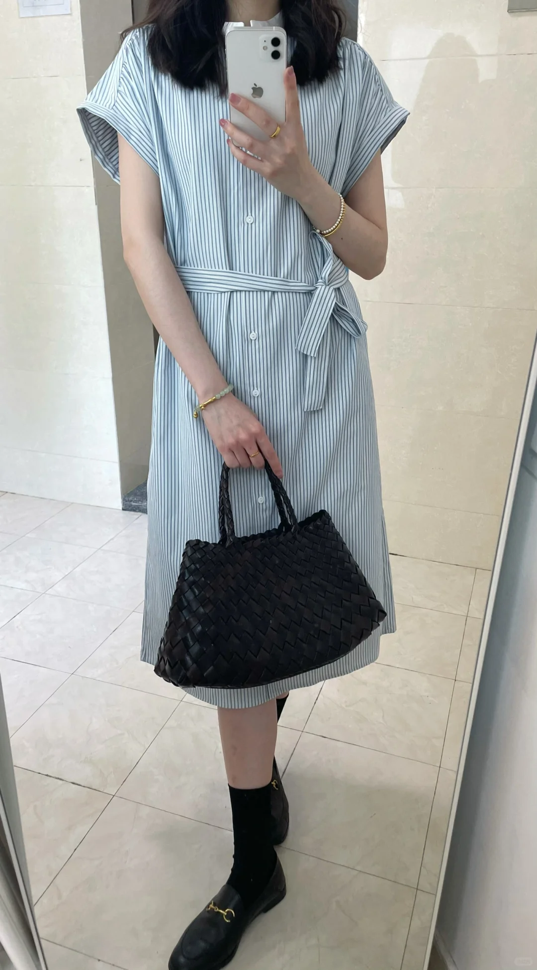 很久前买过muji一件强捻无袖条纹很好穿 但是那件太薄容易透 好在找到这件衬衫裙 有内衬 飞袖也更俏皮遮肉 性价比很高的一件~
