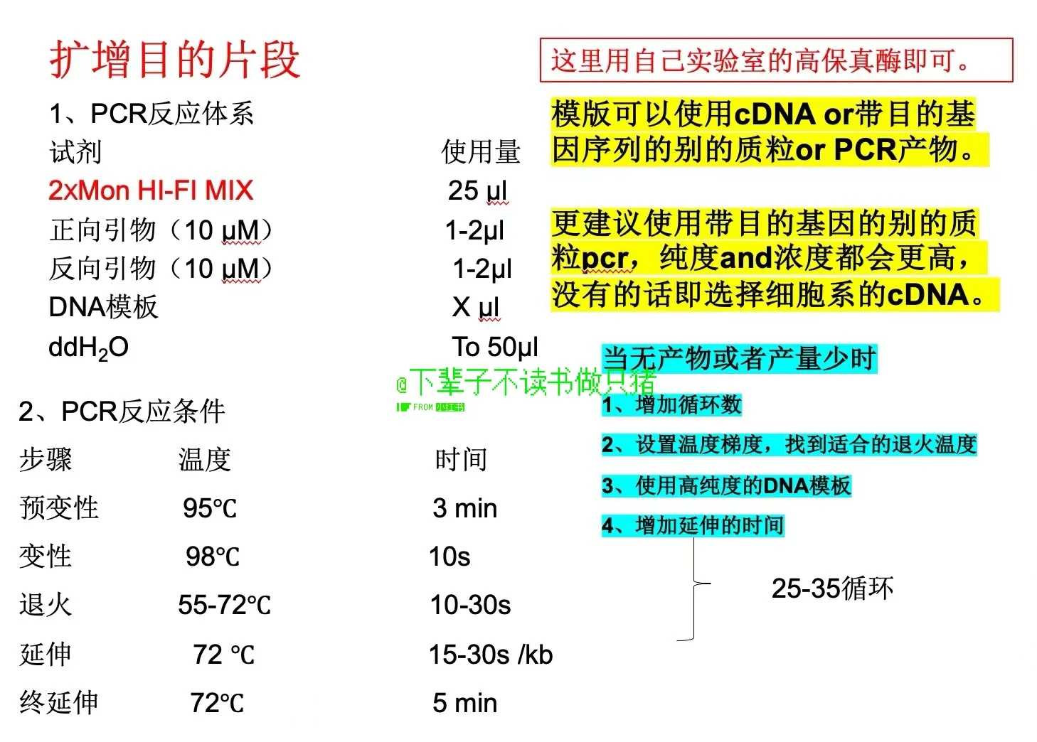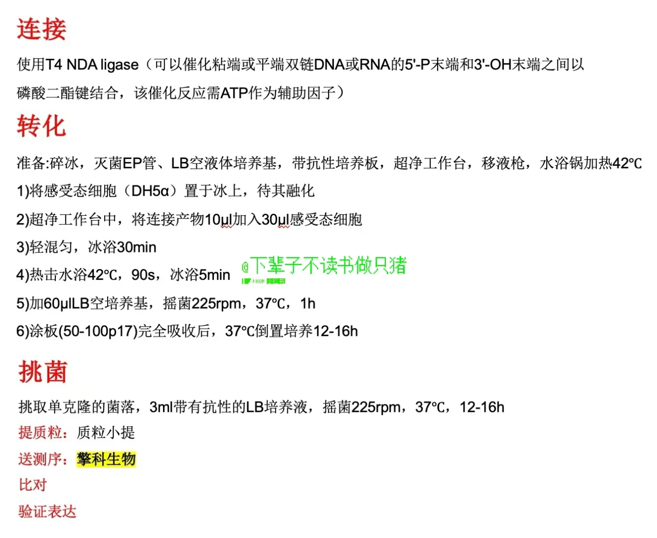 4、后续pcr,产物纯化,酶切,连接,转化的步骤和注意事项。⚠️
