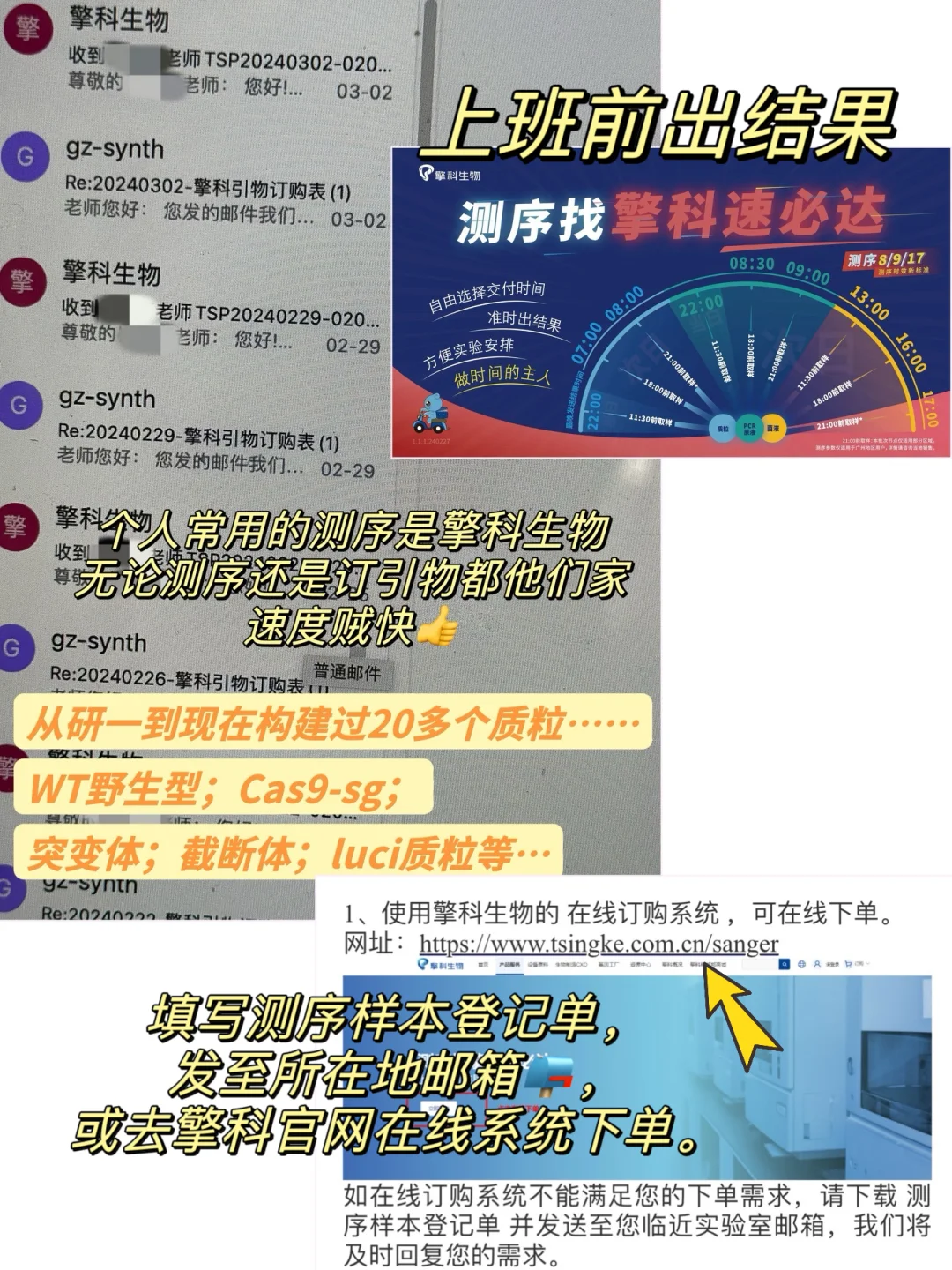 🌟比如说送质粒的话当天下午6点送样后,第二天7点就会出结果;