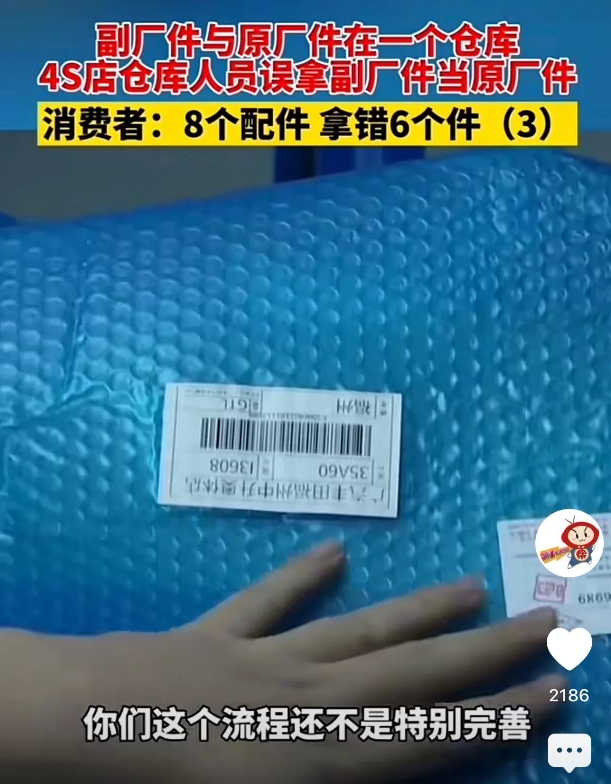 林先生觉得4S店的做法已经涉嫌欺诈了,但是,4S店工作人员却表示,原厂和副厂配件都放在一起,可能工作人员拿的时候拿错了,这很正常,以前经常发生,在安装的时候看出来就更换了。