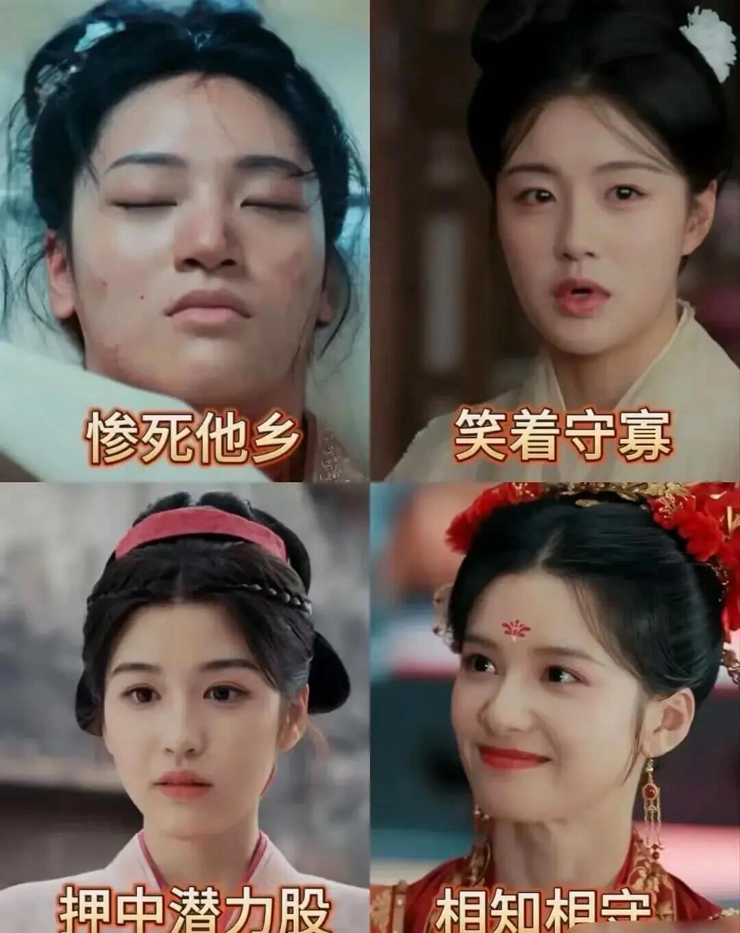 花蓉:天真无邪、温婉端庄。她是被保护得太好的金丝雀,以为遇到能跟自己比翼双飞的另一只同类,可惜嫁给了一只攀满荆棘的牢笼。尽管丈夫临了改变心意替她去做刀去死,但她终究无法逃脱牢笼的束缚,在夫家造反、丈夫死了之后自缢,最终一尸两命。太让人意难平了!
