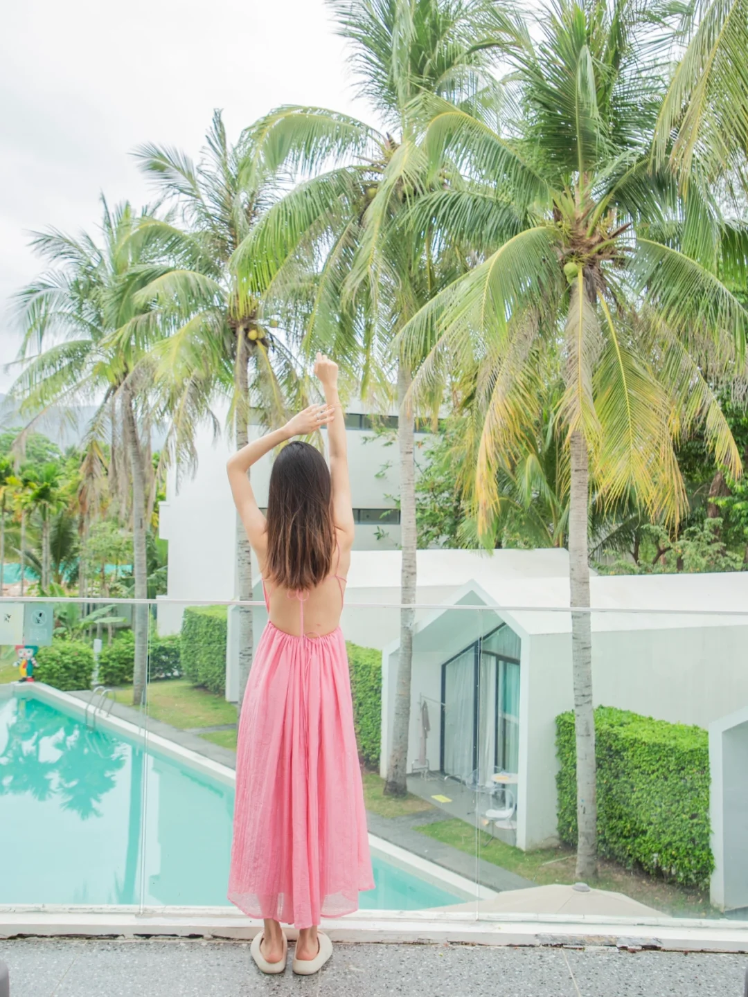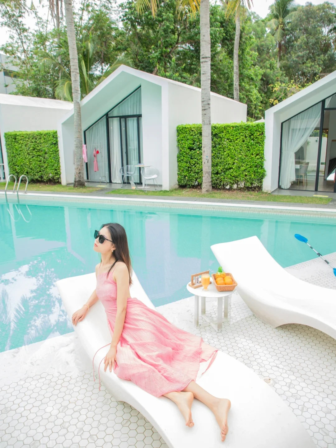 💜别只知道定五星酒店啦,民宿也很小资,久悦生活美宿,透明泳池椰林环绕,270°透明落地窗,晚上在泳池边小酌一杯太惬意了,还给免费拍大片