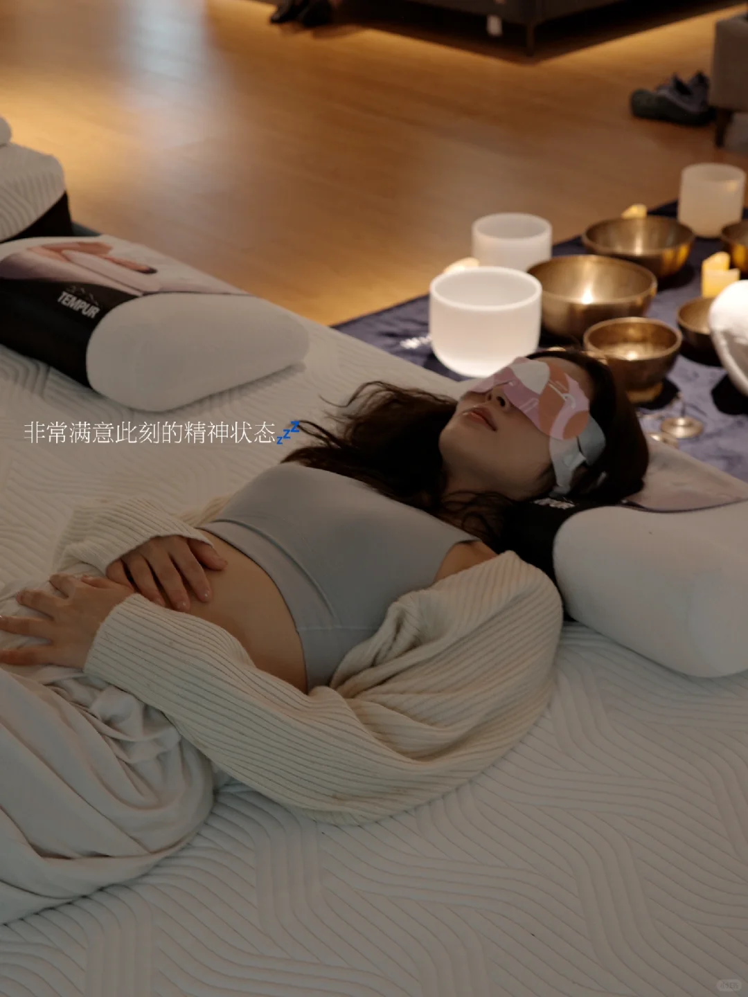 在床上颂钵真的疗愈感plus, 整个身体都被柔软包围,我也轻轻与宝宝连接,很奇妙的,在水晶钵飘渺的震感中,在床垫云朵般的包裹中,我仿佛也回到了母体✨