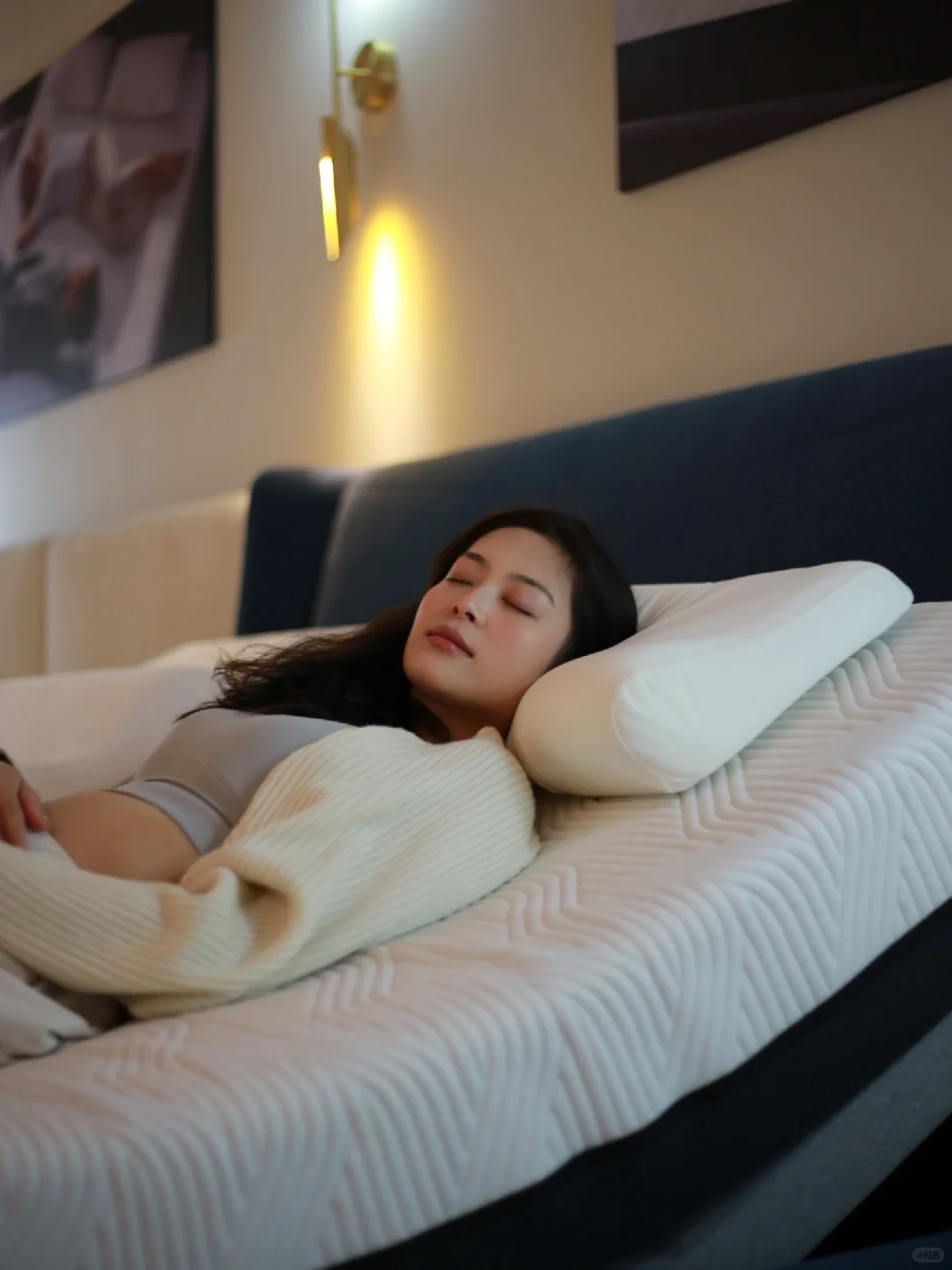 可以调节家角度(对于孕期来讲真的很实用),回弹力十足,睡上去的软是很踏实的软,不会塌陷,有一种被大地接住的踏实感🧘