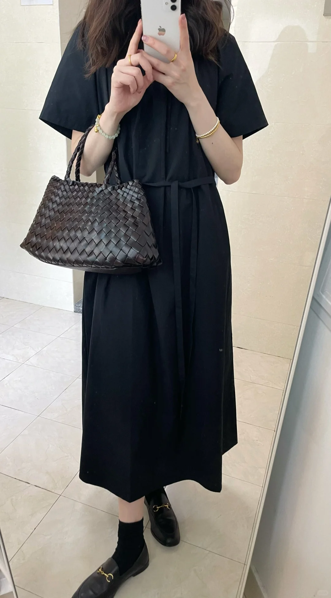 蓝色V领连衣裙简直是高端女神范儿的标配,商务场合穿它气场直接拉满!束腰让身材