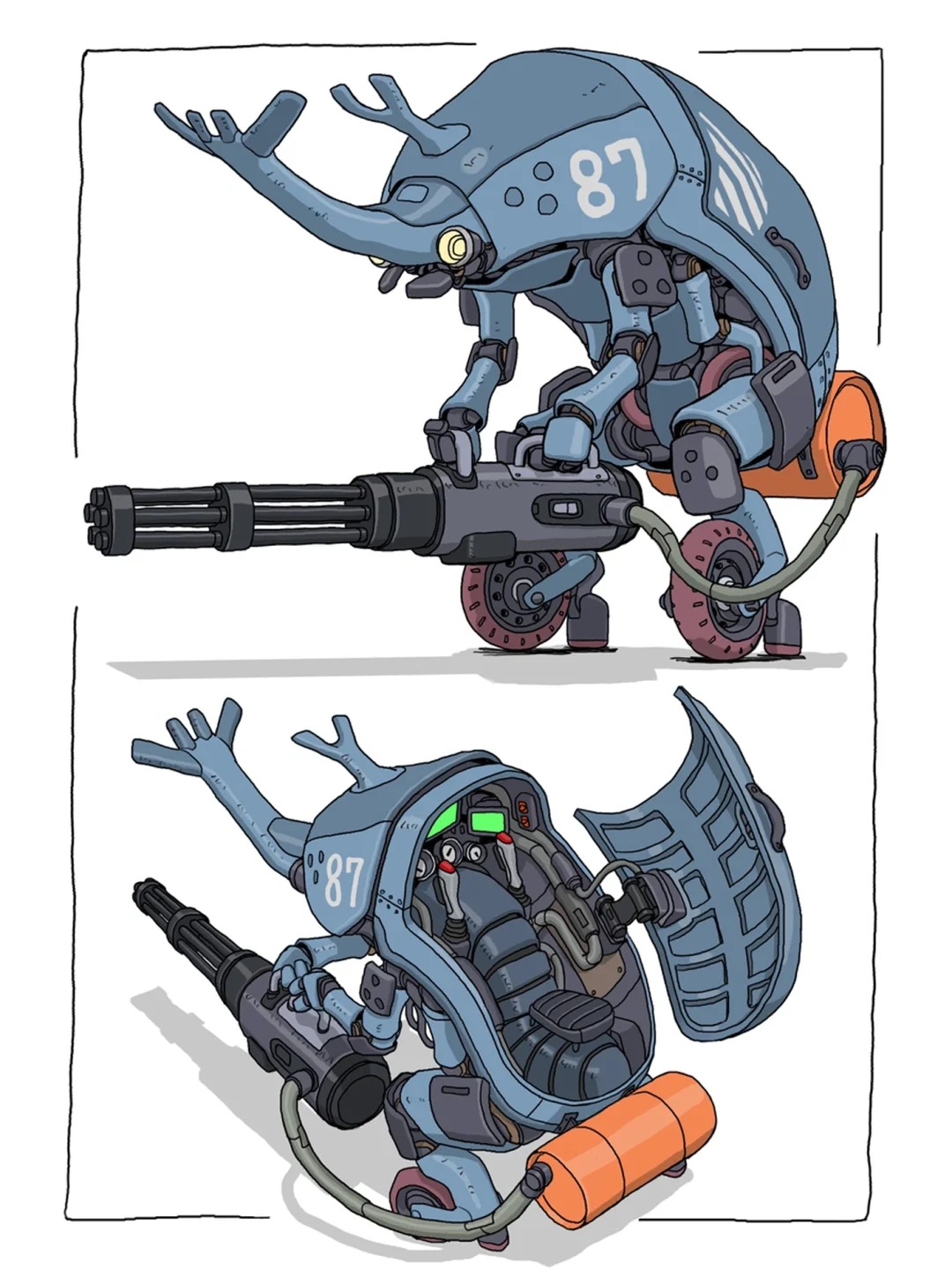 项目分享|突破生物与机械界限的仿生机甲 👀分享来自日本的角色设计师和插画家 gatring3 的个人设计项目,他以仿生机甲为主题,将生物与机械元素巧妙融合,打破了传统的界限,创造了一系列极具创意的机械设计,不仅收获一众粉丝的喜爱,也受到了米山舞大神的关注。